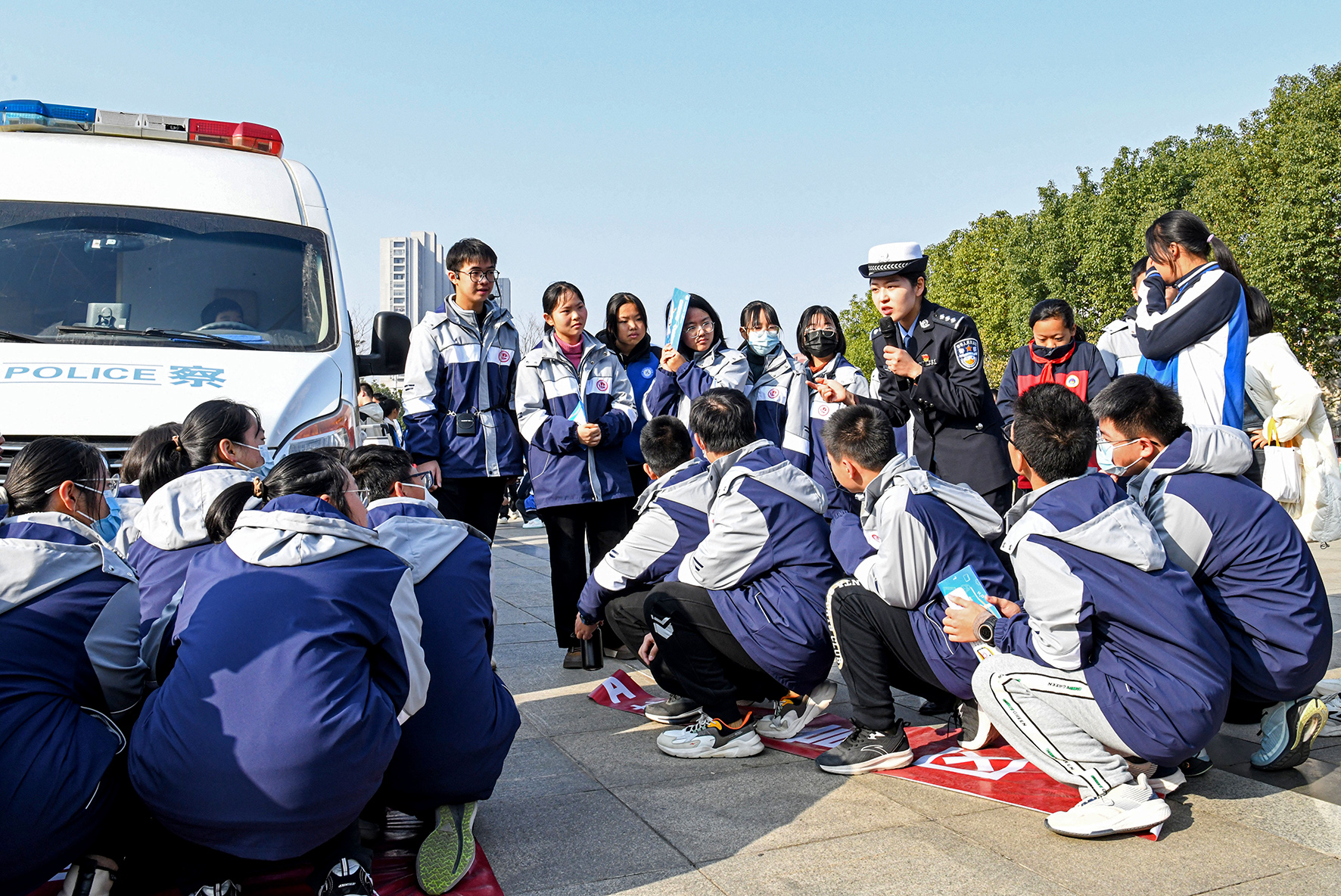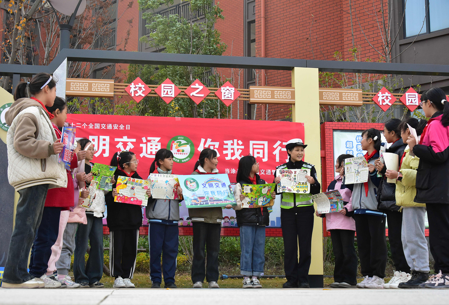 11月29日,安徽省當(dāng)涂縣公安局交管大隊(duì)民警走進(jìn)校園開展“122交通安全日”宣傳活動。