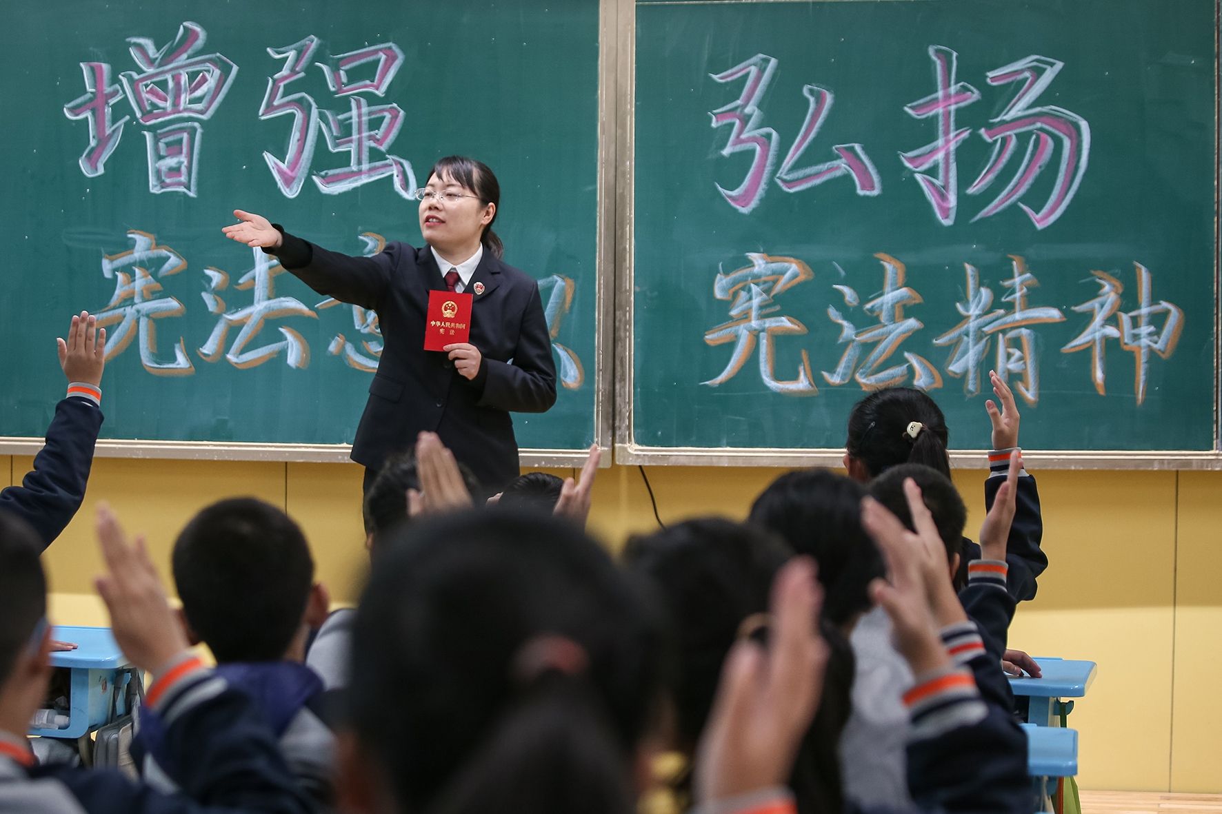 12月4日,陜西省渭南市中級(jí)人民法院組織法官走進(jìn)轄區(qū)中小學(xué),開展憲法宣傳進(jìn)校園活動(dòng)。
