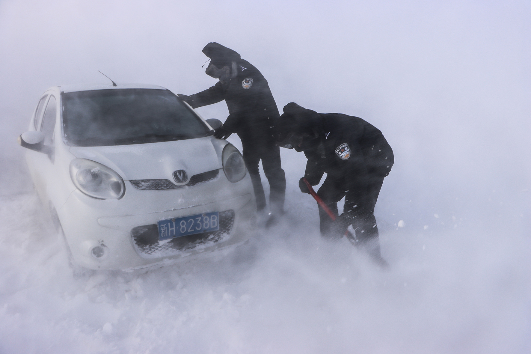12月7日,新疆阿勒泰邊境管理支隊(duì)托斯特邊境派出所民警經(jīng)過1個小時的努力,將遭遇“風(fēng)吹雪”被困車輛安全救出。