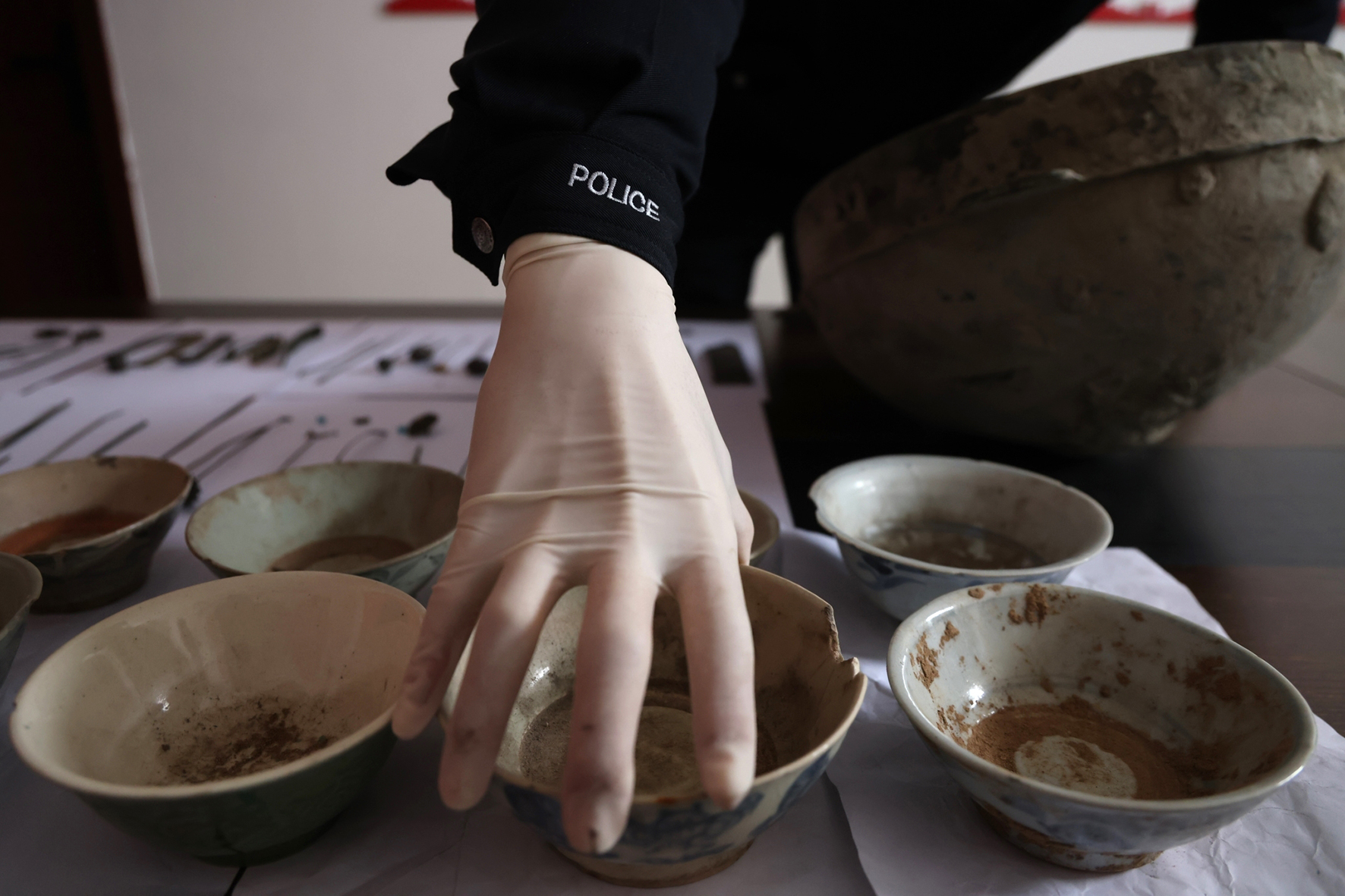 近日,遼寧省新民市公安局大柳派出所破獲一起古墓被盜案件,抓獲犯罪嫌疑人史某和王某。經(jīng)查,二人累計盜挖古墓10座,盜取古錢幣84枚、四耳銅釜1個、銅鏡1個、碗具8個、銀器若干。目前,史某和王某因涉嫌盜掘古墓葬罪和倒賣文物罪已被警方依法予以刑事拘留,案件正在進一步辦理中。