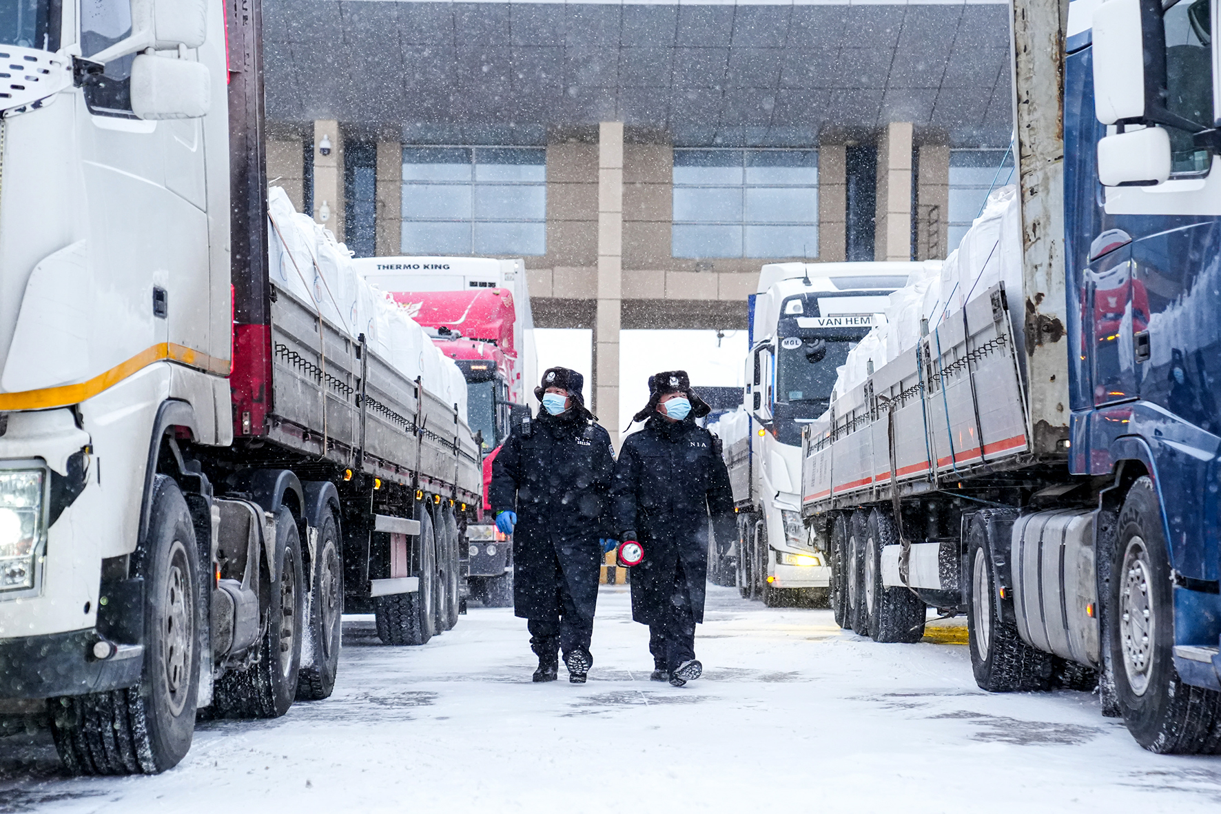 12月14日,內(nèi)蒙古自治區(qū)二連浩特市迎來強降雪天氣。駐守在祖國正北方的內(nèi)蒙古出入境邊防檢查總站二連出入境邊防檢查站科學合理調(diào)配執(zhí)勤警力,開啟全部查驗通道,加快車輛檢查驗放速度,全力確保口岸通關(guān)安全穩(wěn)定順暢。
