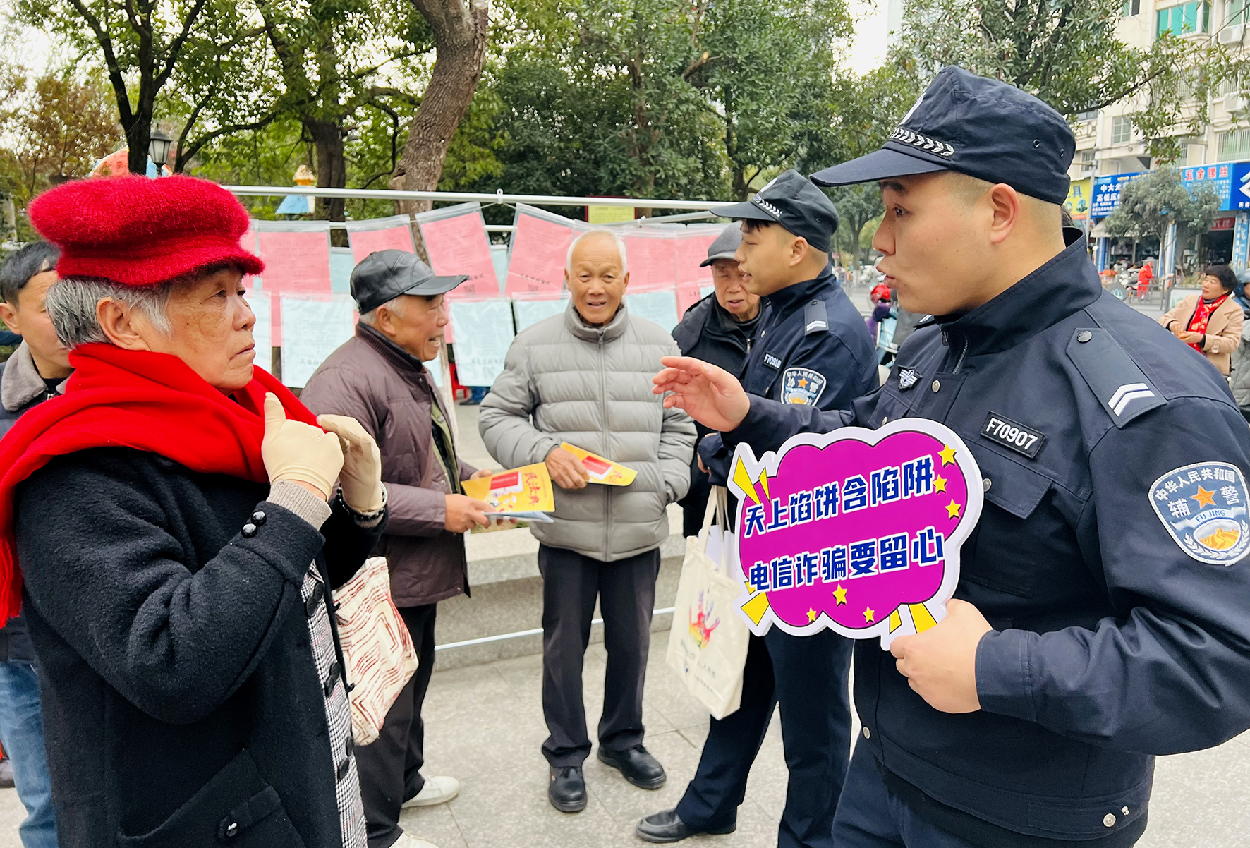 圖為12月15日,民輔警在赤城街道石梁灣公園向老人們普及防騙知識。