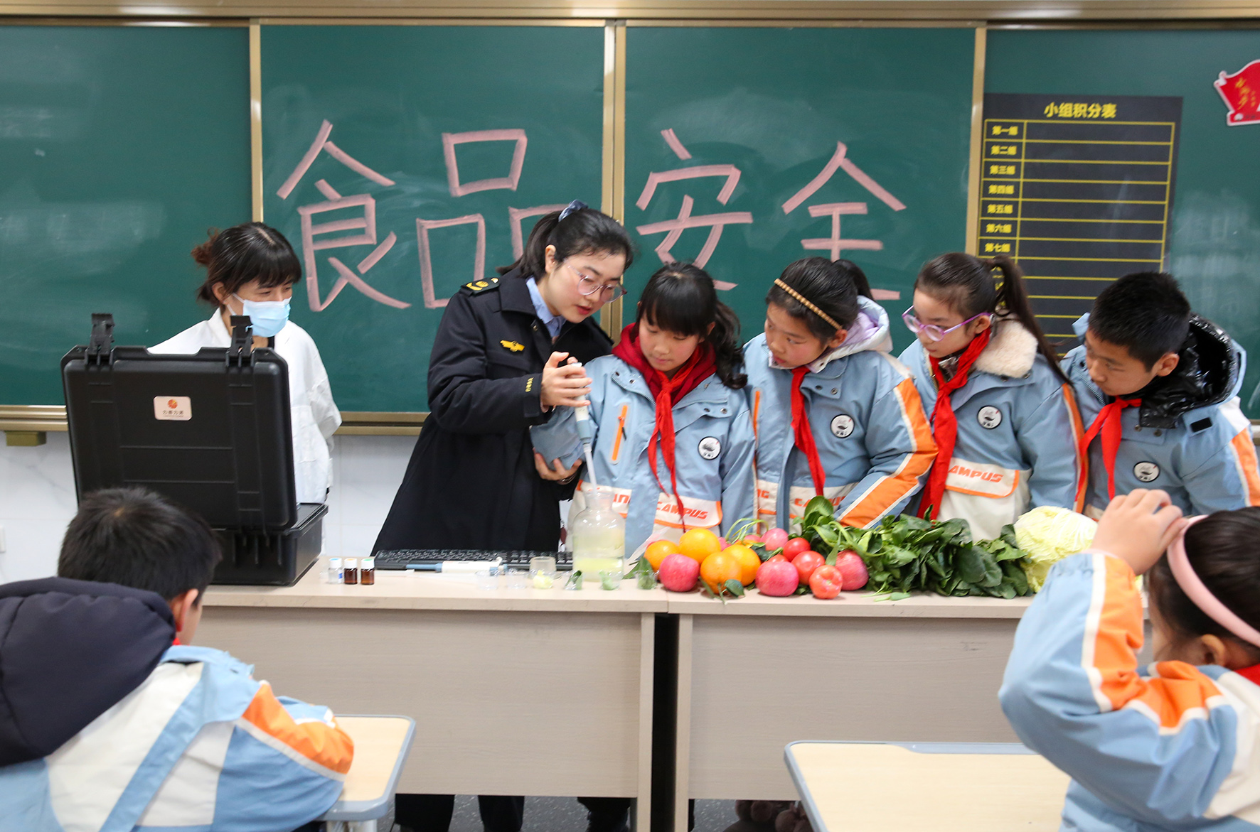 12月22日,江蘇省如皋市市場(chǎng)監(jiān)督管理局工作人員走進(jìn)李漁小學(xué),開(kāi)展食品安全進(jìn)校園活動(dòng)。