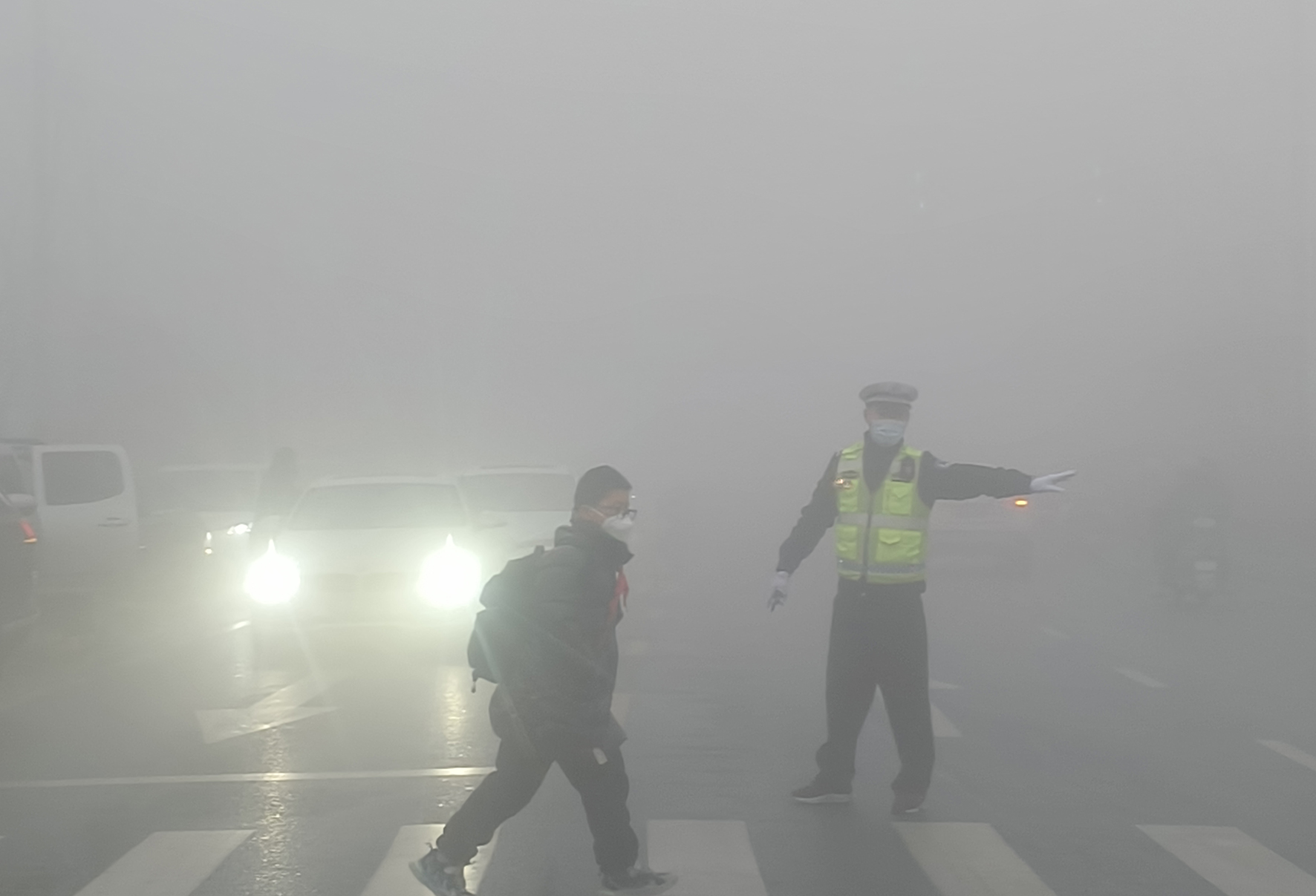 12月29日,安徽舒城普降大霧。舒城縣公安局交管大隊(duì)立即啟動惡劣天氣應(yīng)急預(yù)案,組織警力加強(qiáng)對學(xué)校周邊路口的交通疏導(dǎo),站好“護(hù)學(xué)崗”。