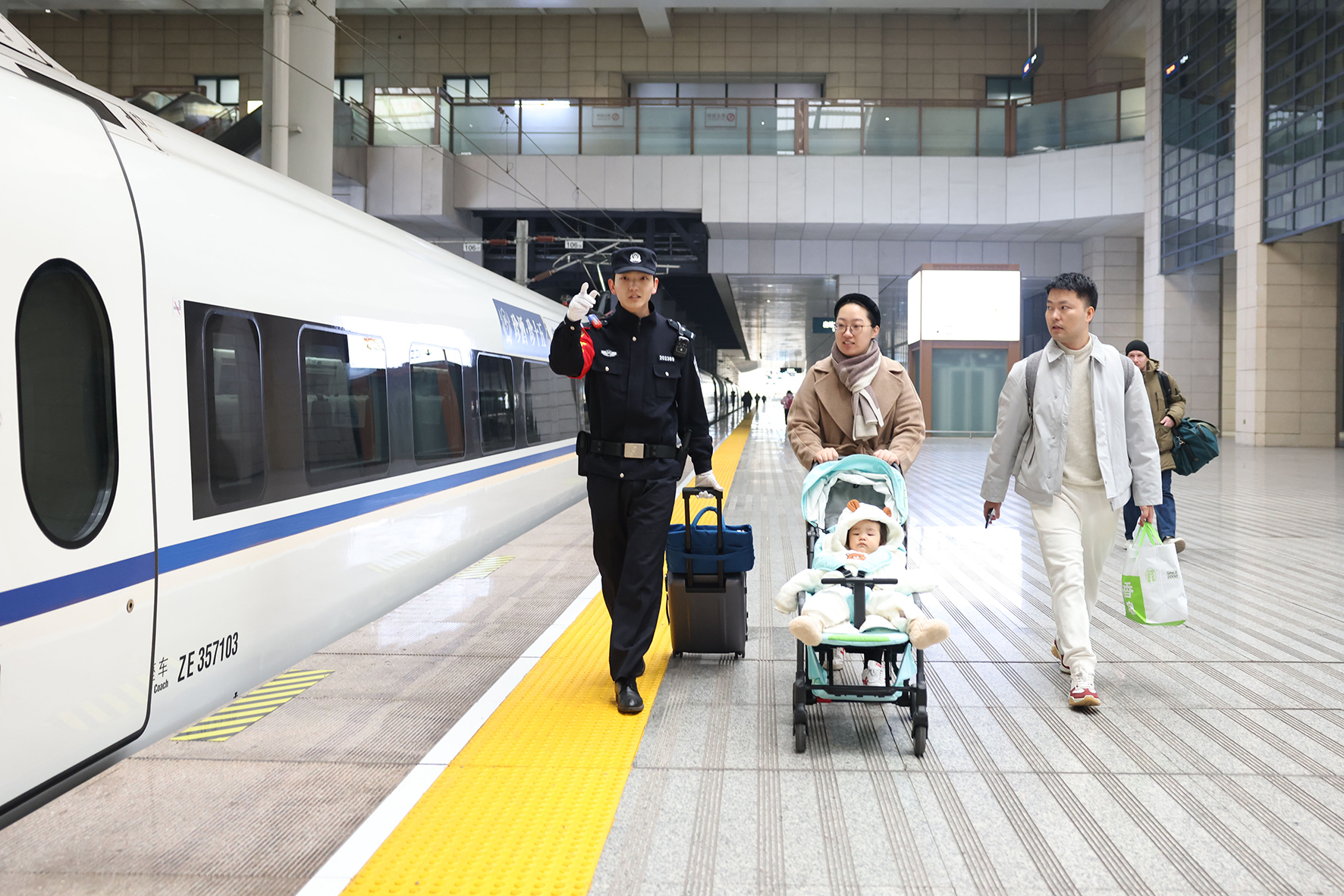 1月1日,西安站、西安北站迎來(lái)元旦小長(zhǎng)假返程客流高峰。西安鐵路公安局西安公安處在進(jìn)站口、候車(chē)室、站臺(tái)等客流密集部位增派警力,最大限度提升“見(jiàn)警率”“管事率”。