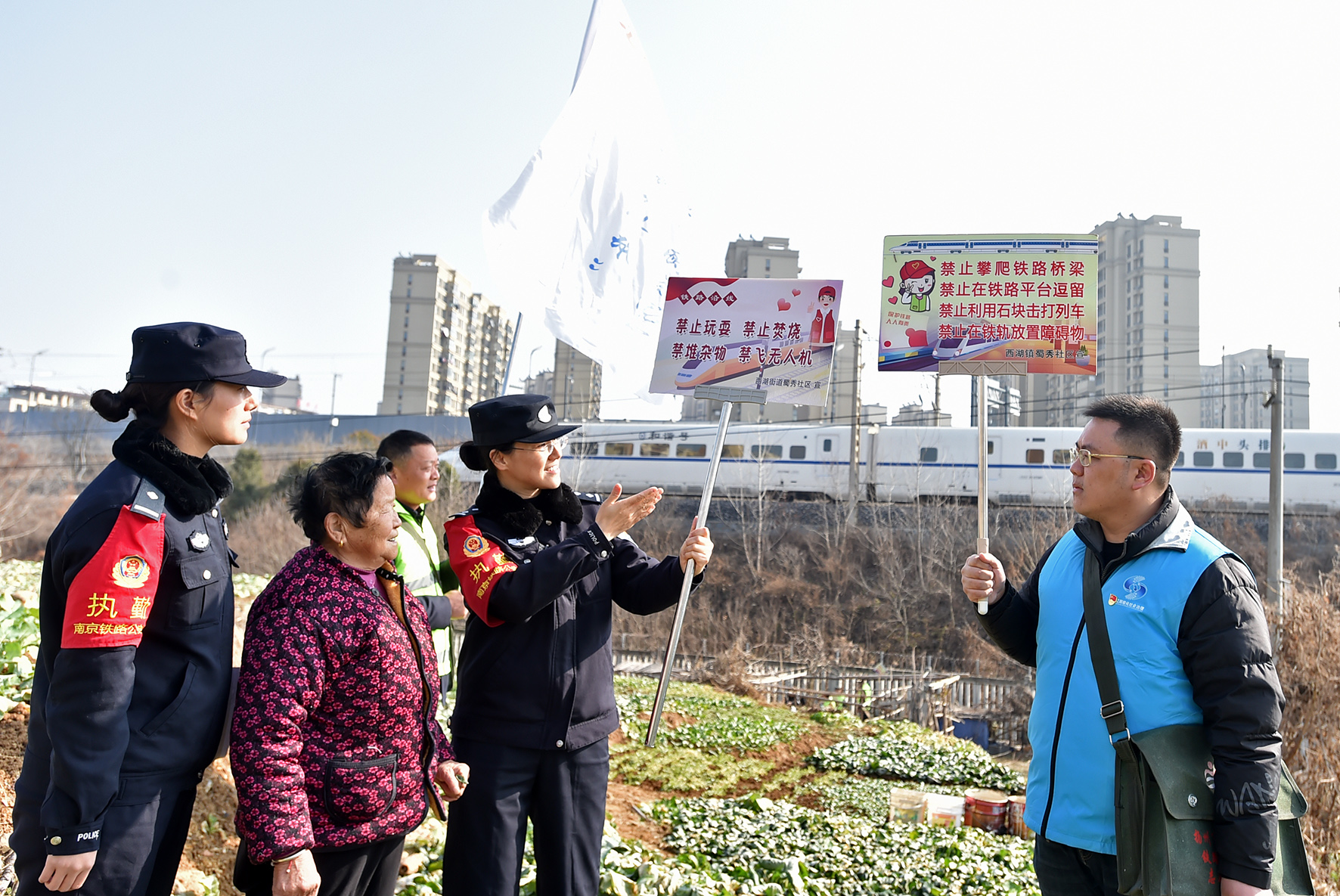 1月1日,一支由南京鐵路公安處揚(yáng)州站派出所民警和揚(yáng)州市邗江區(qū)西湖街道蜀秀社區(qū)網(wǎng)格員、退伍軍人、志愿者等組成的“蜀秀平安”鐵路護(hù)路聯(lián)防志愿巡防隊(duì)在鐵路沿線開(kāi)展巡防宣教活動(dòng)。