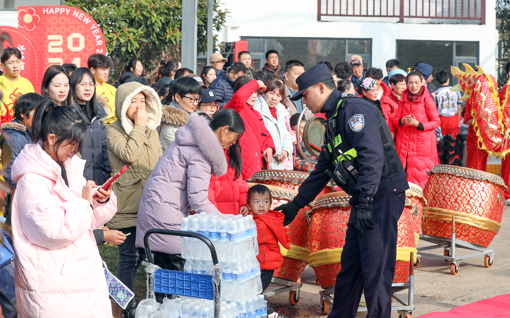 2023年12月31日,江蘇省宜興市公安局西渚派出所民警在龍獅大賽活動(dòng)現(xiàn)場(chǎng)執(zhí)勤。