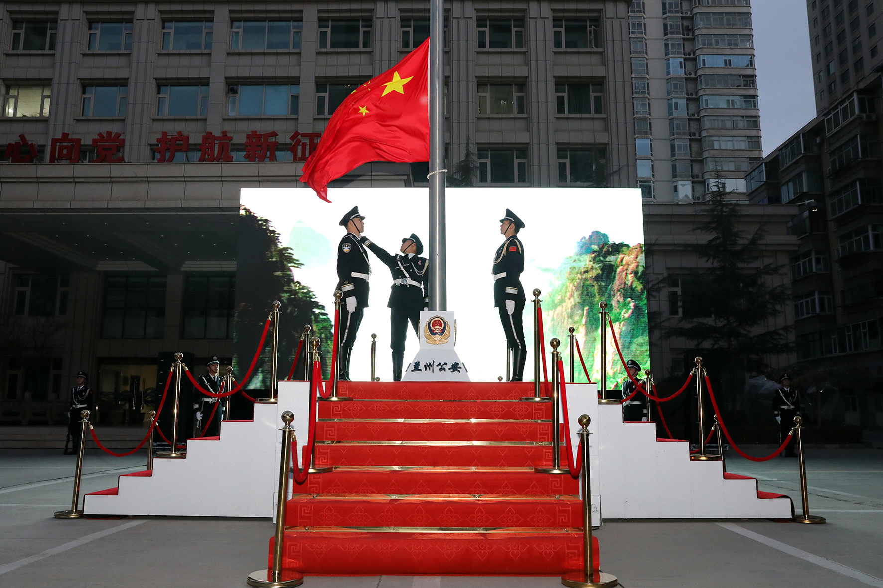 1月1日,甘肅省蘭州市公安局隆重舉行新年升國(guó)旗儀式。同時(shí),還進(jìn)行了新警授銜整裝儀式,為6名新警代表頒發(fā)授銜證書(shū)。