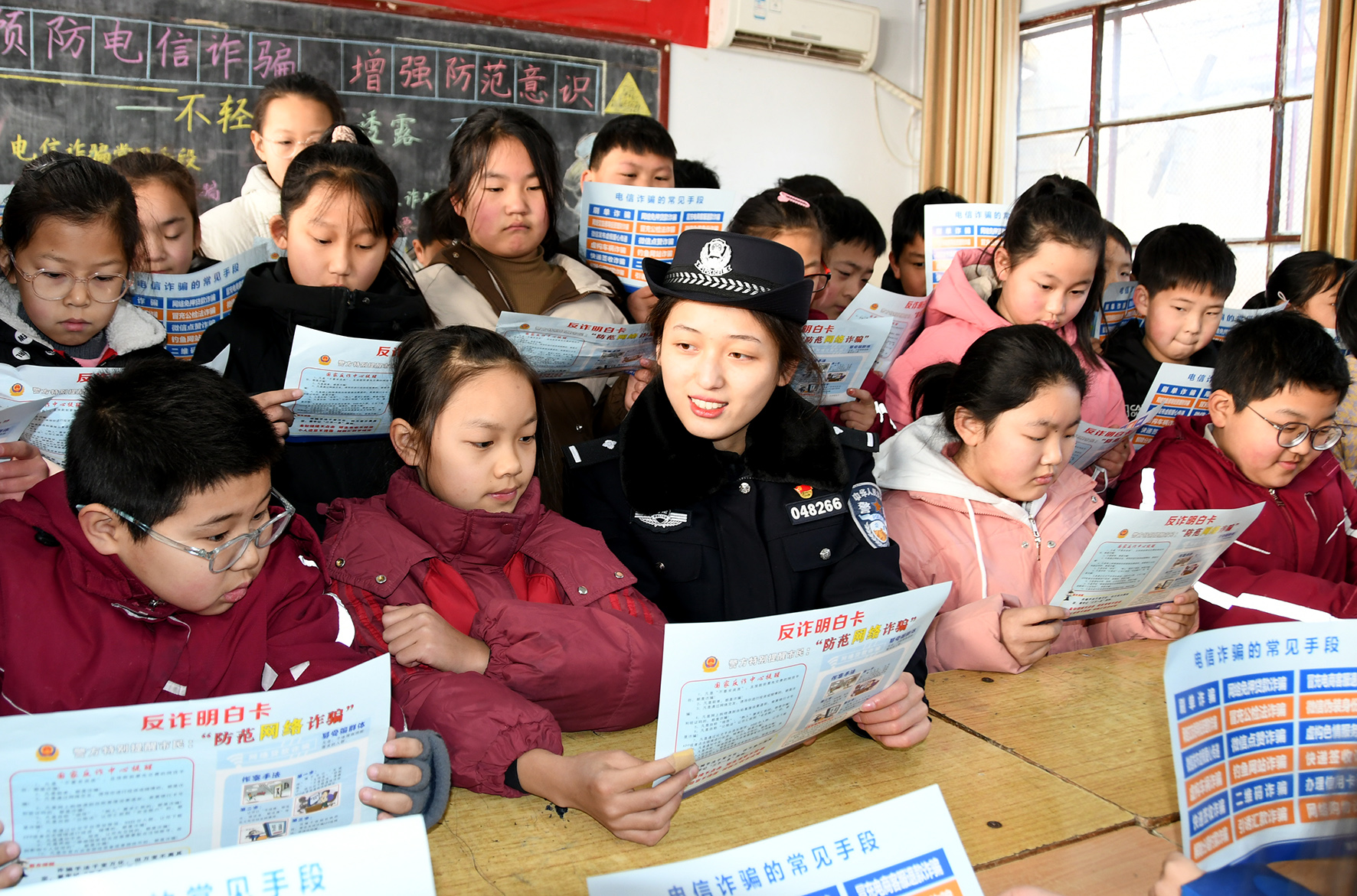 圖為1月22日,民警在實(shí)驗(yàn)小學(xué)為同學(xué)們講解防范電信詐騙知識。