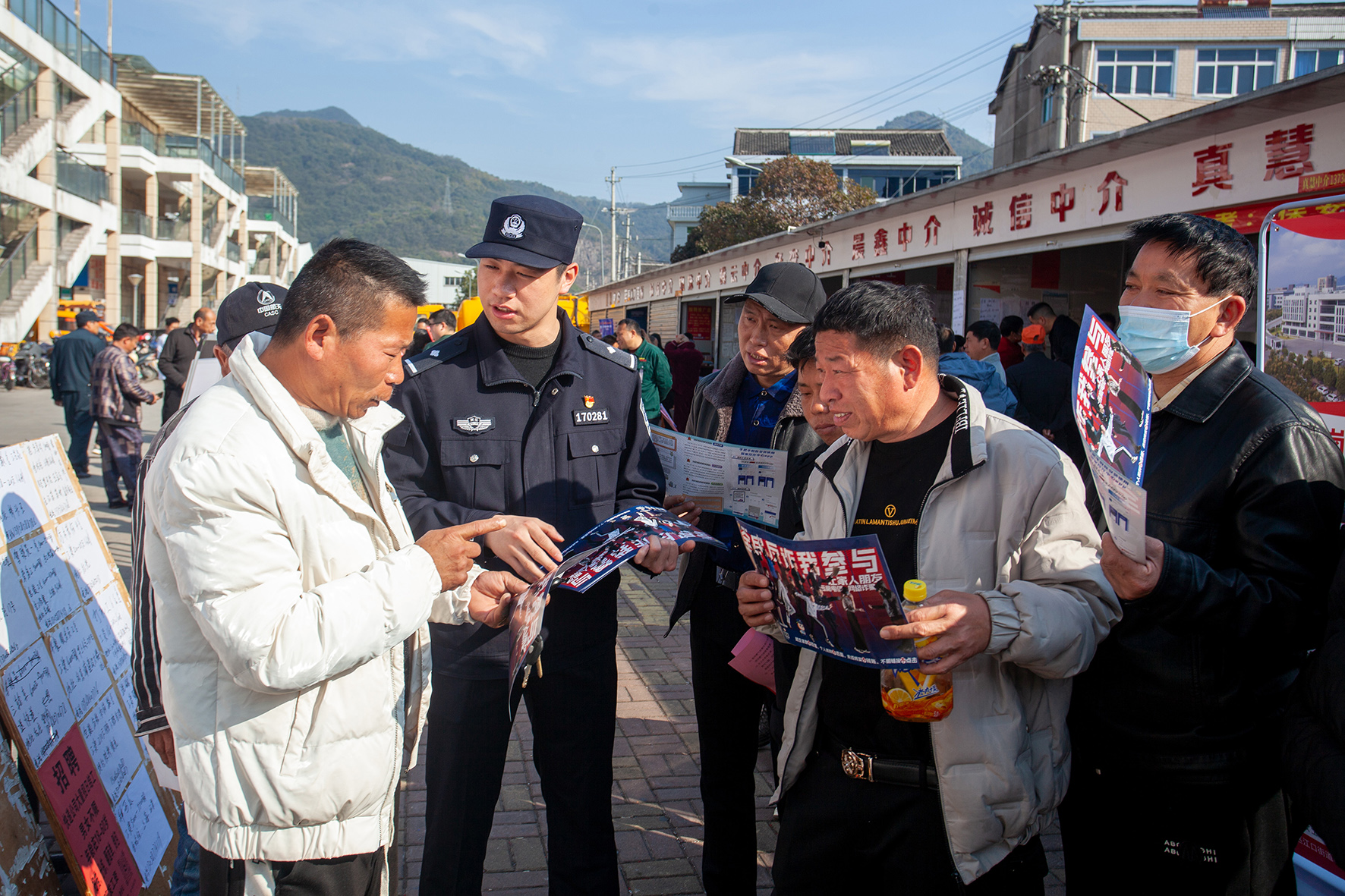 2月19日,浙江省臺州市黃巖區(qū)在人力資源市場舉辦首場新春招聘會。黃巖公安分局城北派出所民警現(xiàn)場維護秩序,同時開展以反詐、禁毒為主的安全防范宣傳,提高務(wù)工人員的安全防范意識。