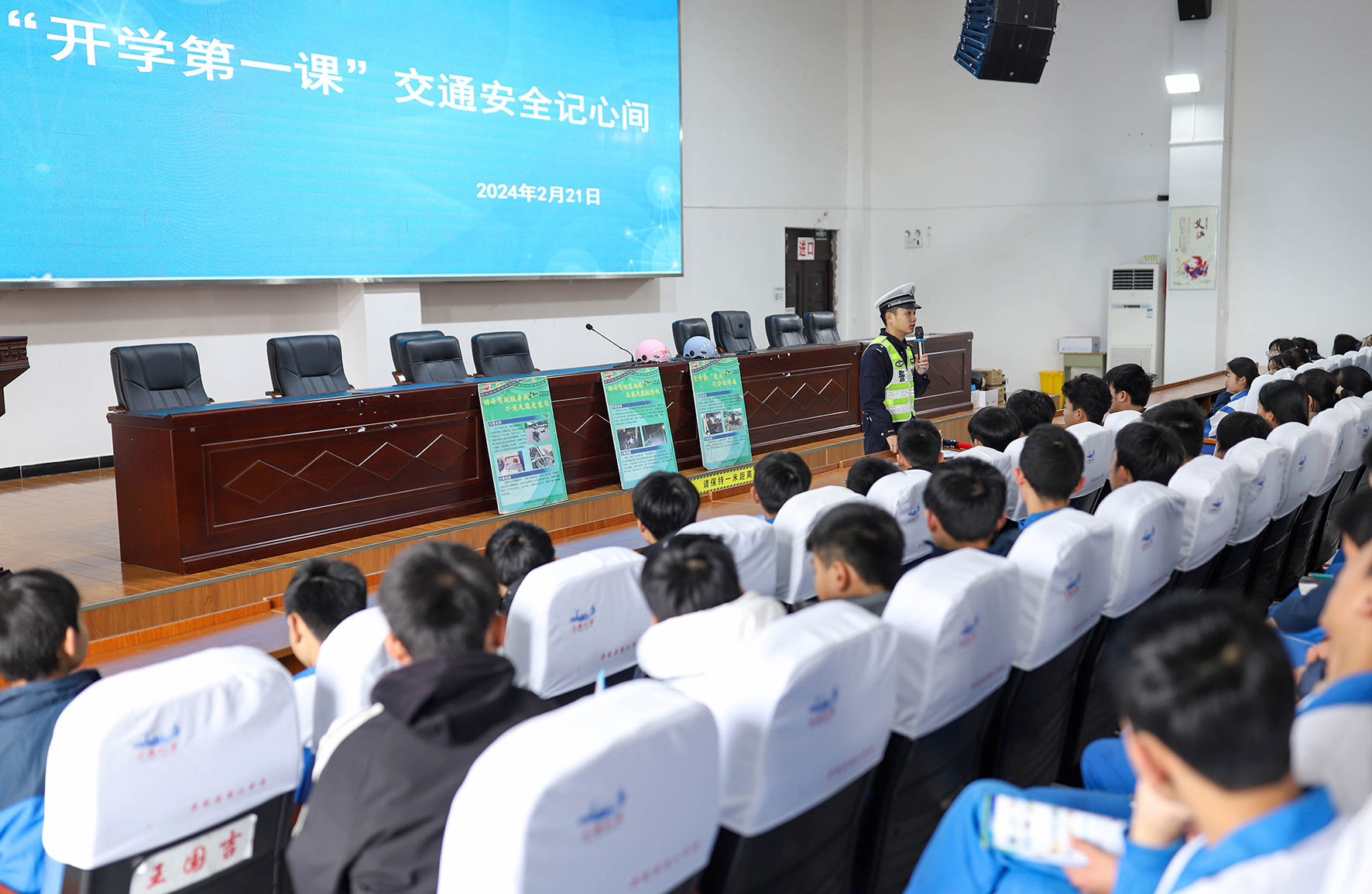 2月21日,貴州省丹寨縣公安局交警大隊組織民警走進轄區(qū)第二中學(xué),為300余名學(xué)生開展“開學(xué)第一課”交通安全宣傳活動。