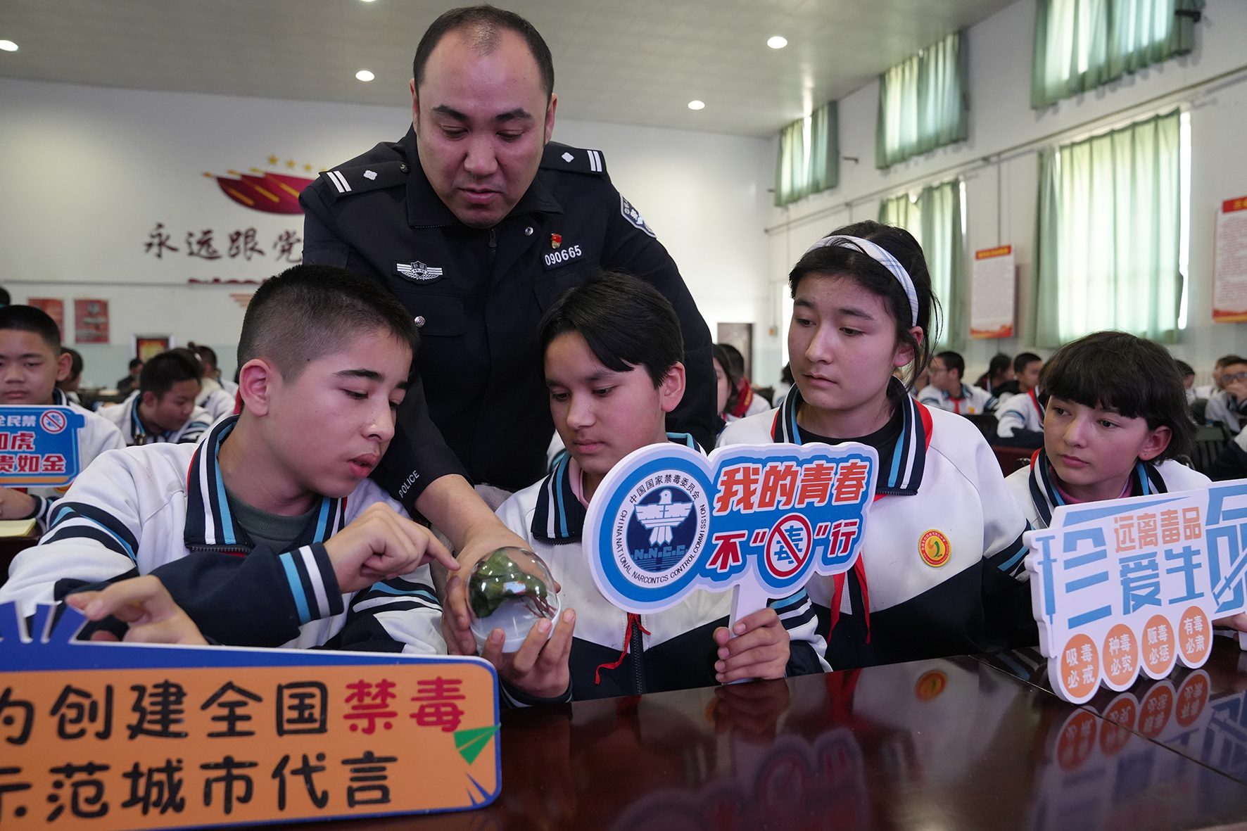 2月26日,新疆出入境邊防檢查總站阿勒泰邊境管理支隊拜興邊境派出所聯(lián)合青河縣公安局禁毒大隊走進(jìn)拜興小學(xué),給學(xué)生們送上“開學(xué)第一課”。