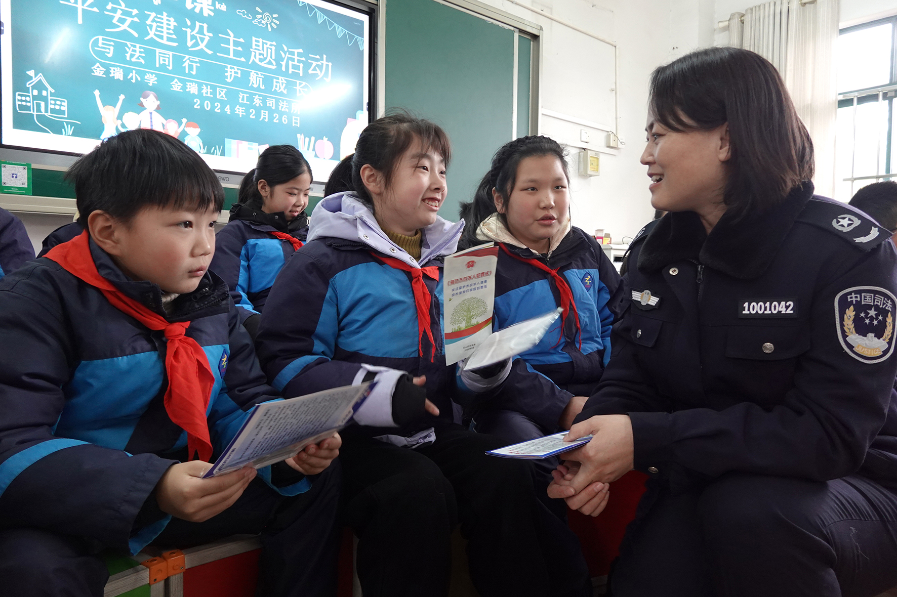 2月26日下午,安徽省馬鞍山市花山區(qū)江東司法所聯(lián)合江東街道金瑞社區(qū),在金瑞小學(xué)開展“與法同行 護(hù)航成長”平安建設(shè)主題活動。