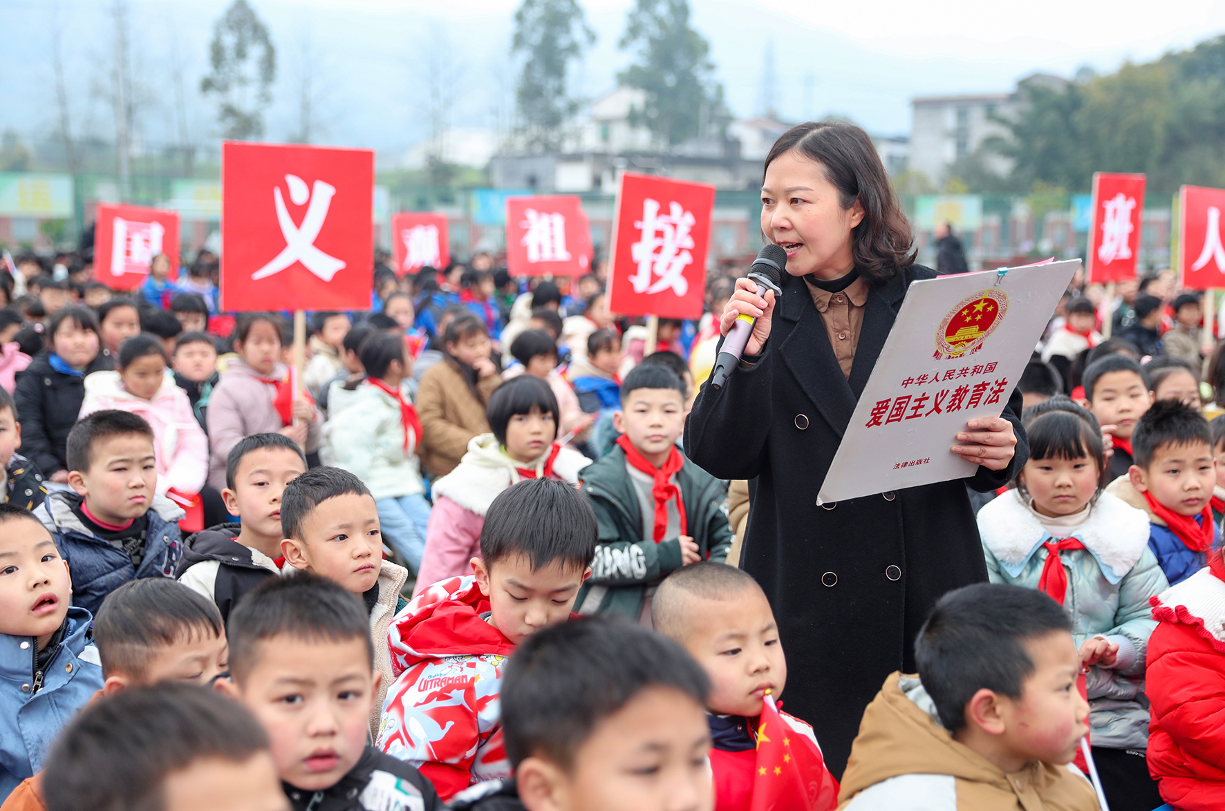 2月26日,四川省華鎣市委政法委、法學(xué)會和老年志愿者法治宣講團(tuán)聯(lián)合組織的宣傳小分隊普法志愿者,為學(xué)生們宣講愛國主義教育法。