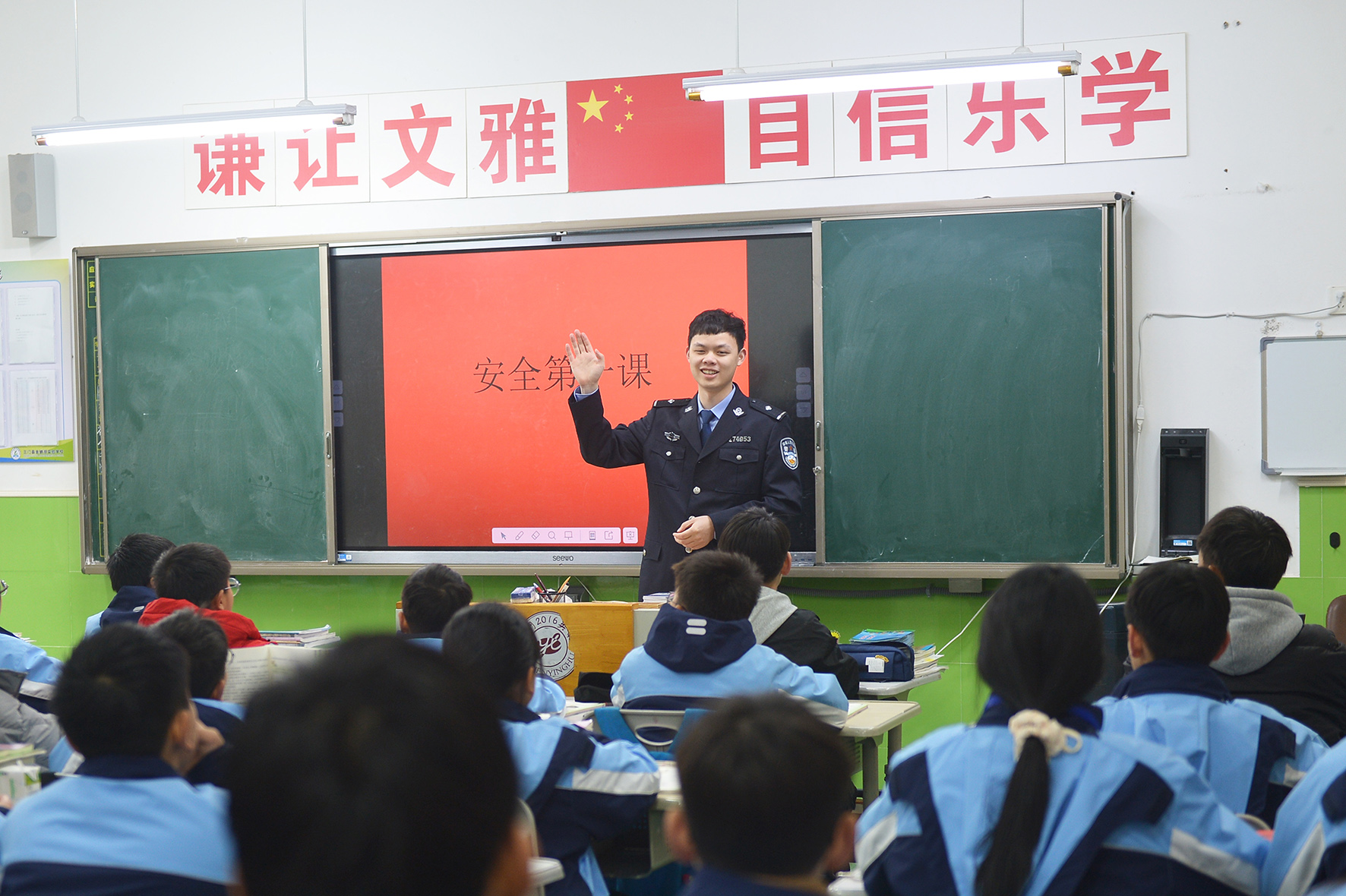 2月26日,浙江省三門縣公安局海潤派出所組織民警進(jìn)校園開展“護(hù)苗”安全教育課活動。