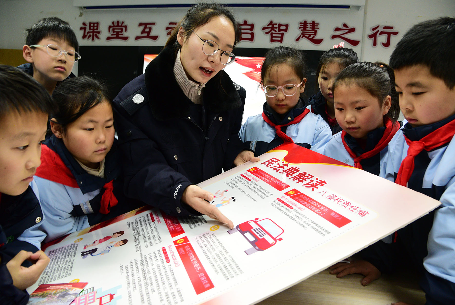 圖為七里甸司法所工作人員為小學(xué)生解讀民法典。