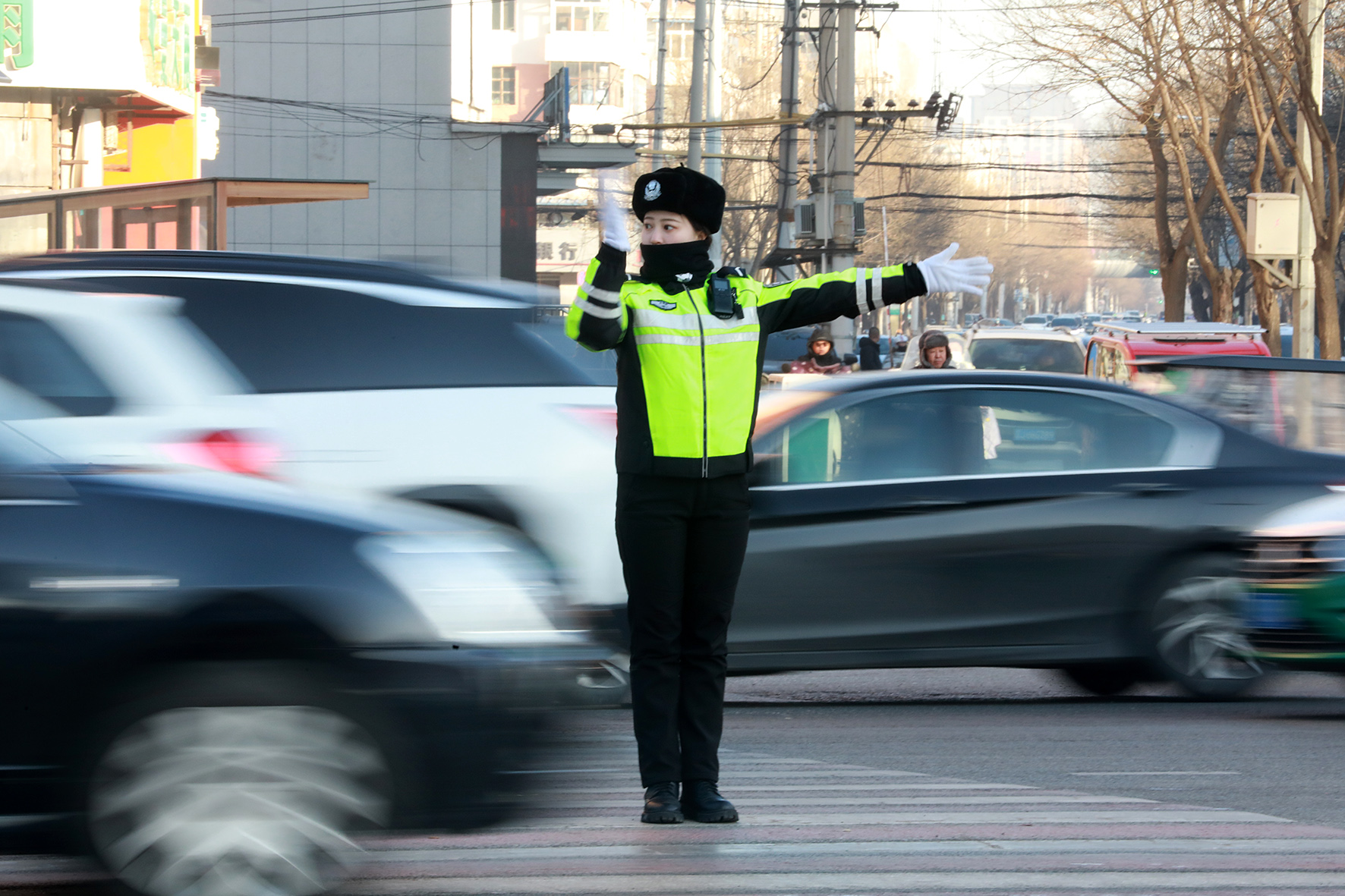 3月7日,遼寧省阜新市公安局交警支隊(duì)女民警堅(jiān)守崗位,迎接“三八”國(guó)際婦女節(jié)。