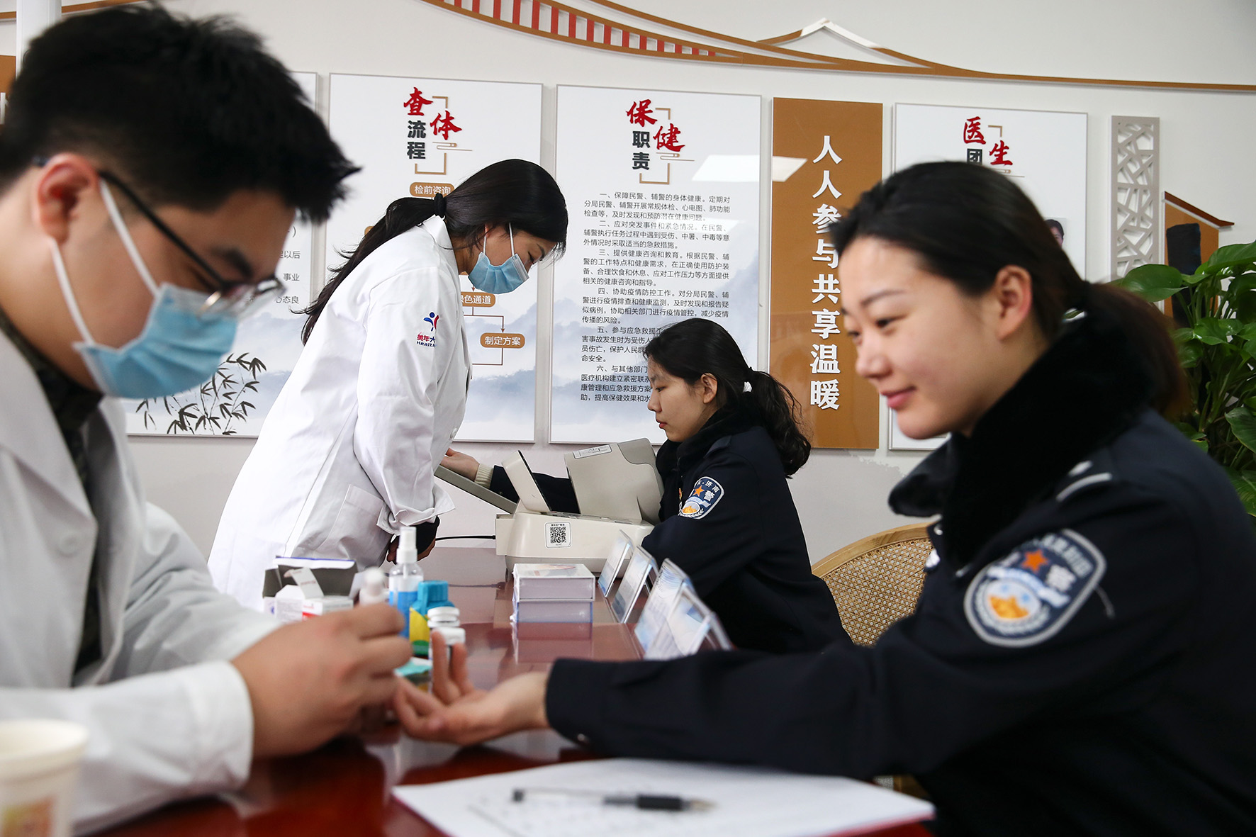 3月7日,山東省濟(jì)南市公安局市中區(qū)分局組織“義診服務(wù)”活動(dòng),邀請(qǐng)醫(yī)務(wù)人員走進(jìn)警營(yíng)為女民警提供查體和保健服務(wù)。