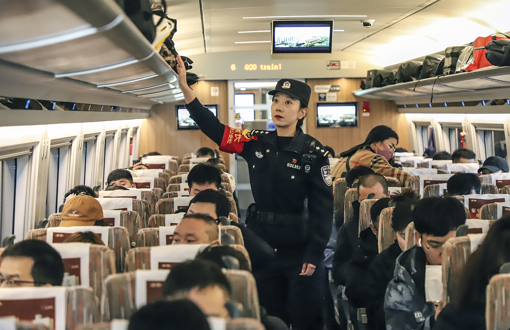 3月7日,沈陽(yáng)鐵路公安局沈陽(yáng)公安處乘警支隊(duì)的女民警在自己的工作崗位上迎接“三八”國(guó)際婦女節(jié)的到來(lái)。