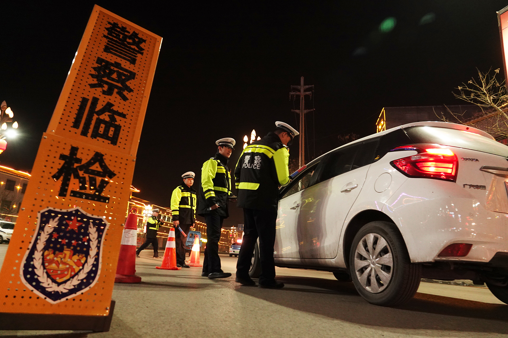 3月6日,山西省運(yùn)城市新絳縣交警大隊(duì)民輔警在108國道入城三岔口夜查酒駕。