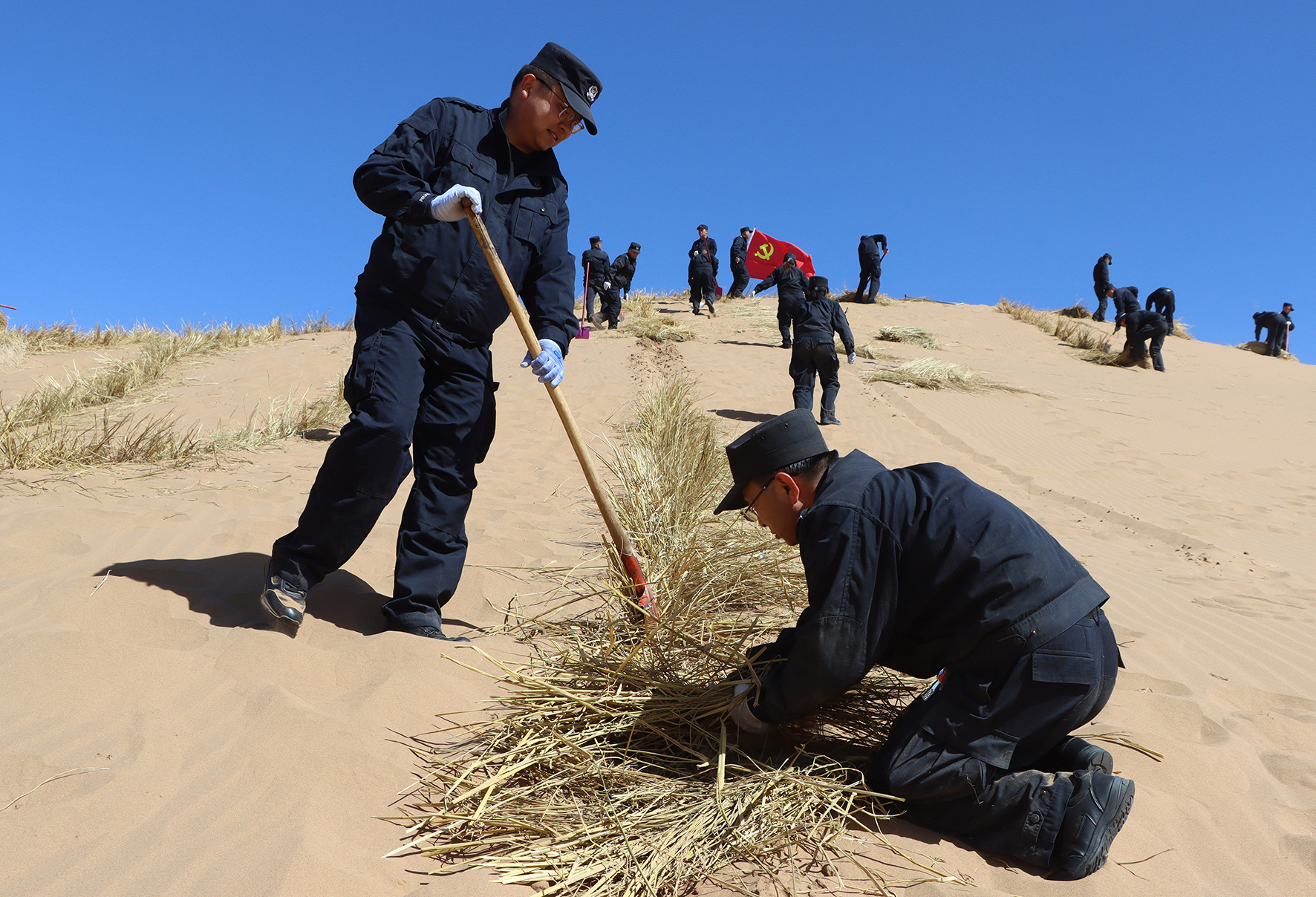3月19日,甘肅省武威市古浪縣公安局積極響應(yīng)縣委、縣政府號召,組織各警種部門民輔警200余人,深入騰格里沙漠南緣、古浪縣北部頭道溝壓沙區(qū),開展全縣春季義務(wù)壓沙活動(dòng)。