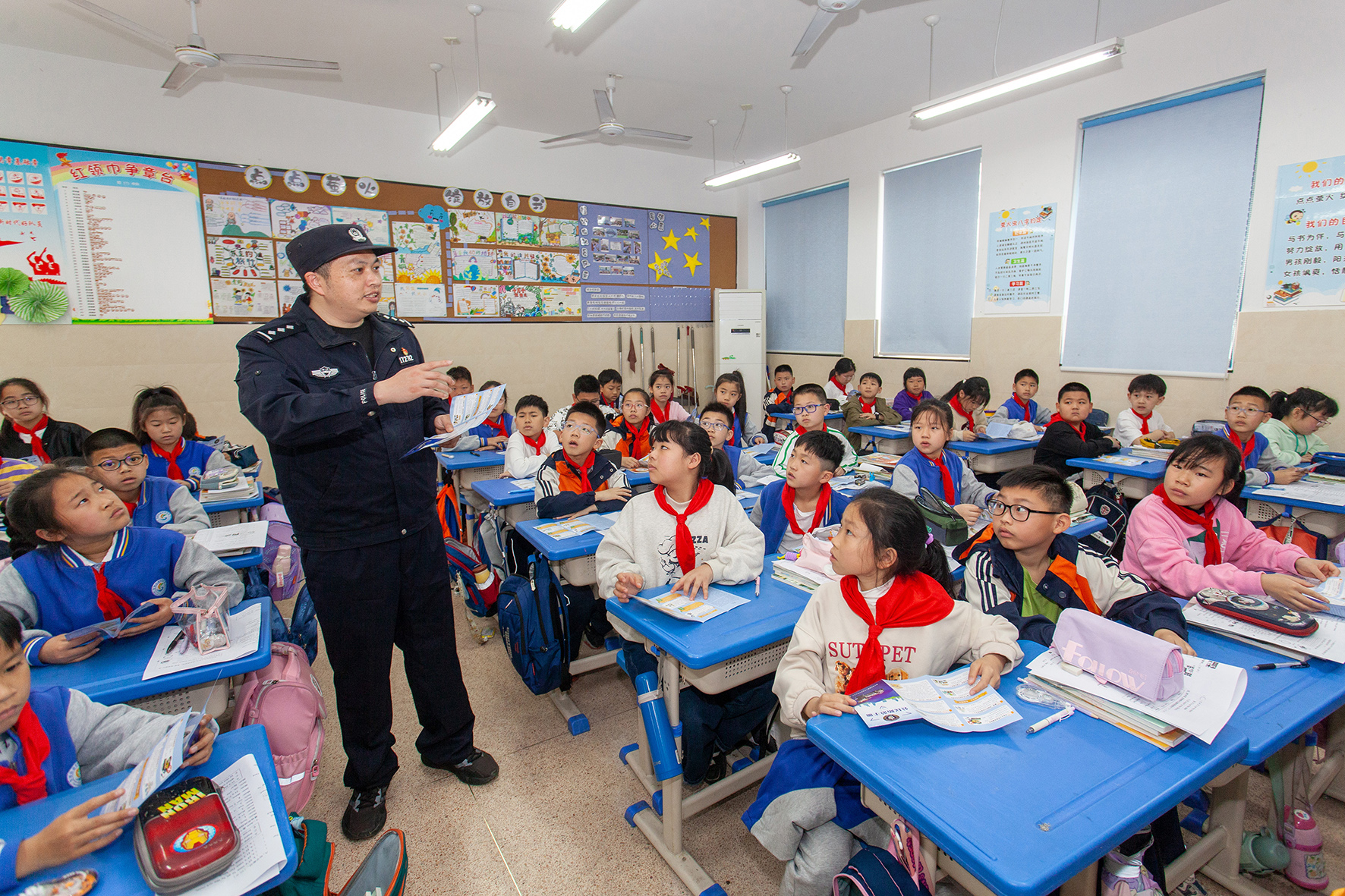 3月25日,浙江省臺州市公安局黃巖分局城東派出所民警在東城小學(xué)開展安全防范宣教活動。