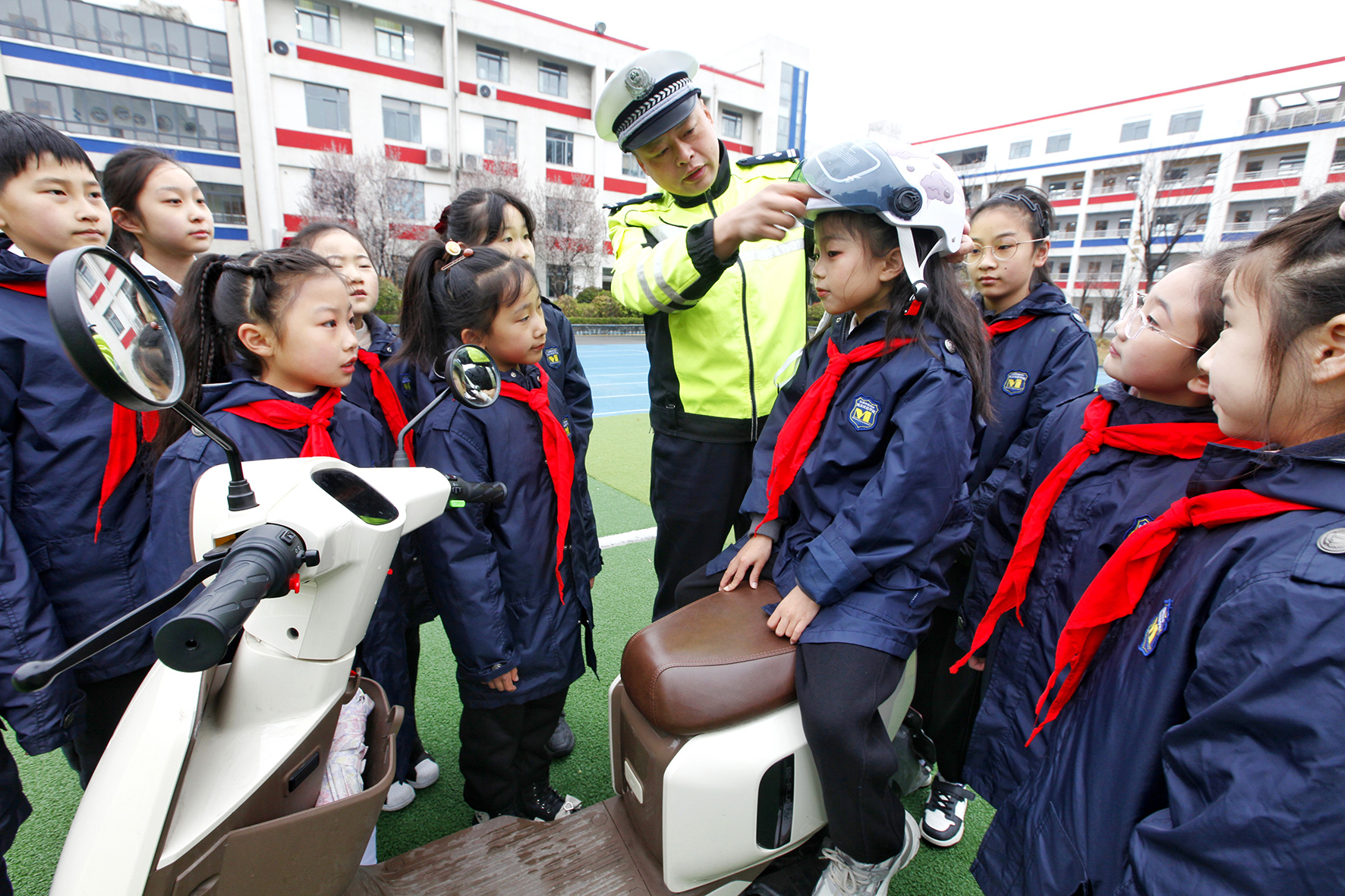 3月21日,在第29個(gè)“全國中小學(xué)生安全教育日”來臨之際,安徽省合肥市公安局交警支隊(duì)公巡一大隊(duì)民警走進(jìn)習(xí)友路小學(xué),開展交通安全進(jìn)校園活動。