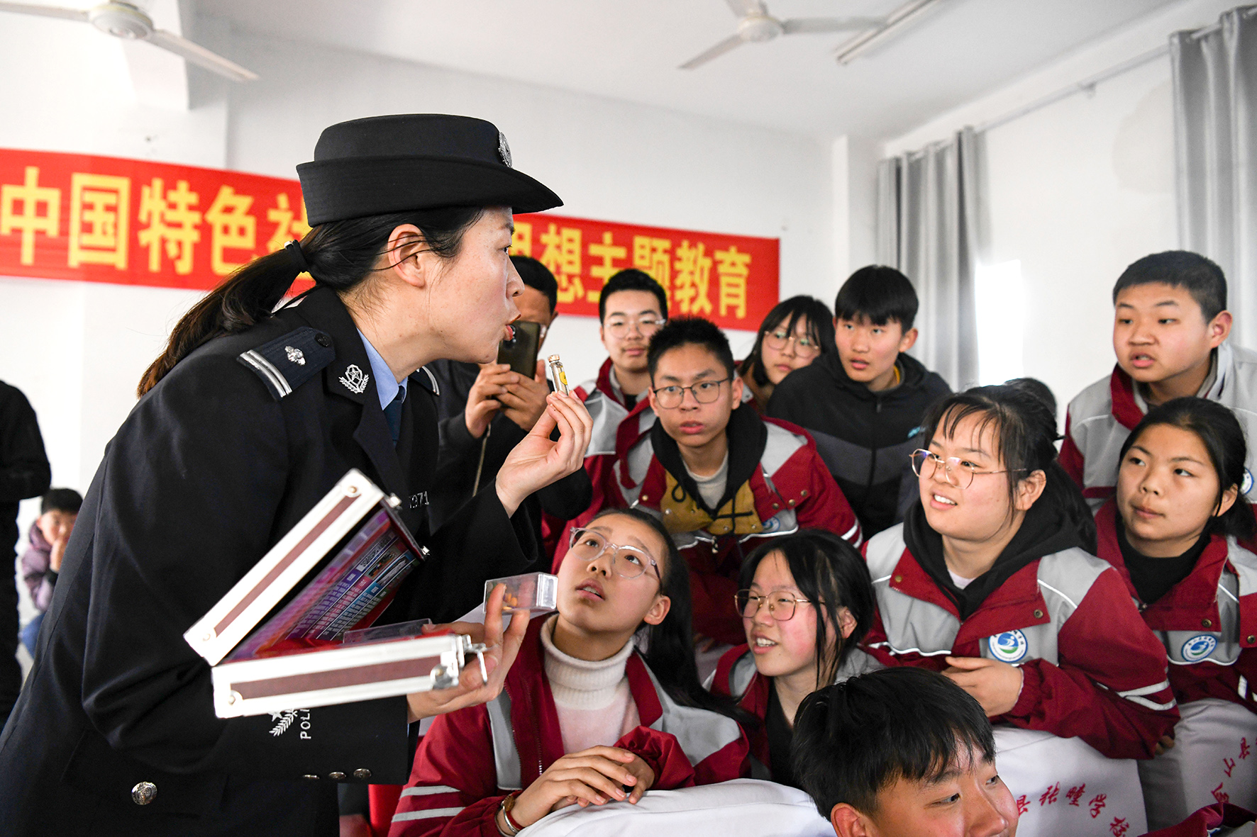 3月25日,安徽省阜南縣公安局城關(guān)派出所組織民輔警走進(jìn)轄區(qū)中小學(xué)校,向?qū)W生們宣講防溺水、防范校園欺凌、禁毒知識和網(wǎng)絡(luò)電信詐騙知識。