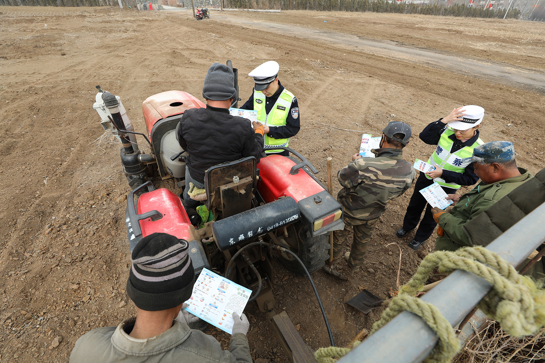 3月27日,遼寧省阜新市公安局交通警察支隊細河大隊民警走進田間地頭,針對性地開展交通安全知識宣傳活動。