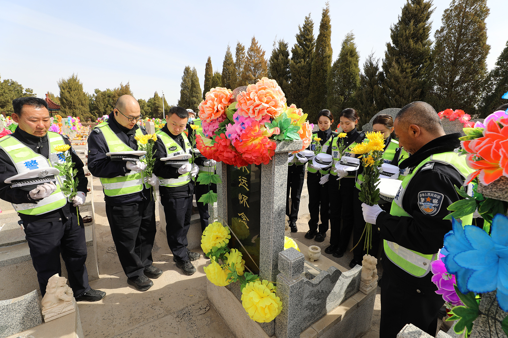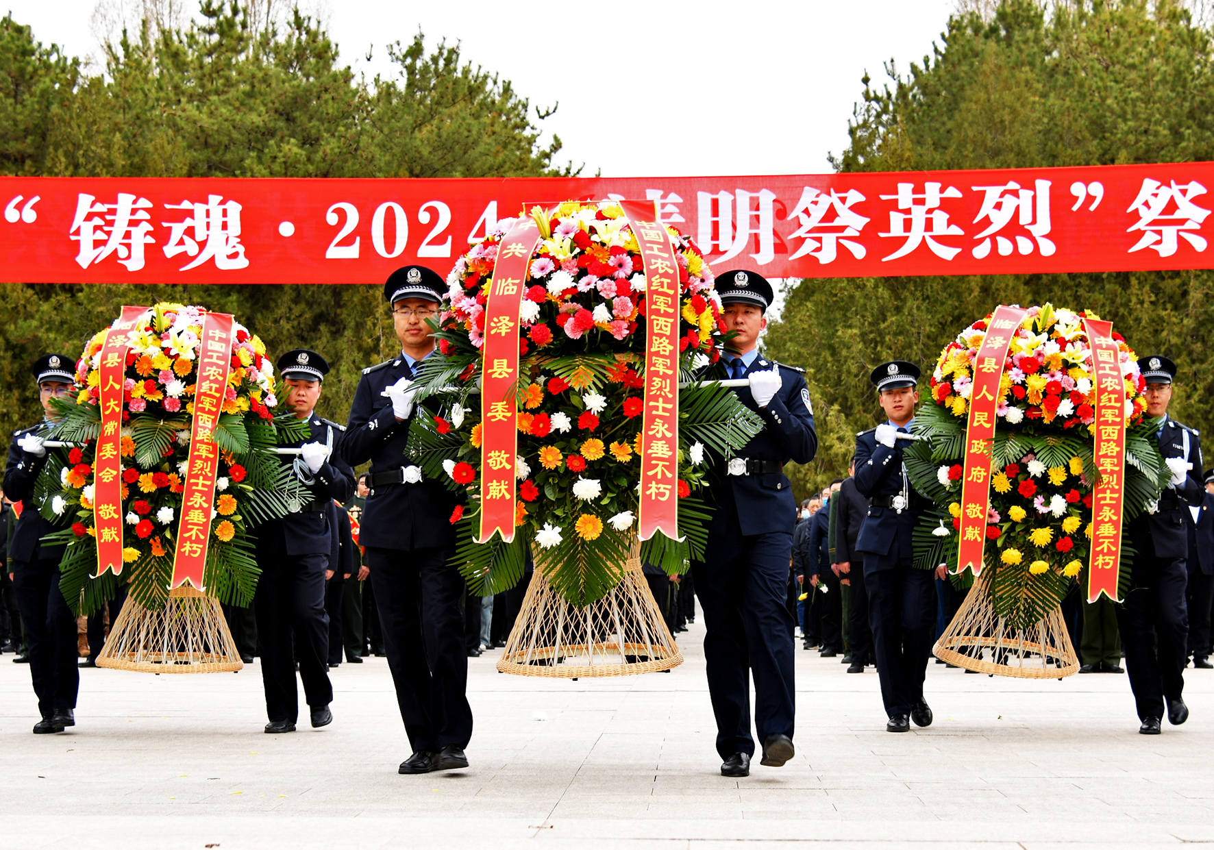 4月3日,甘肅省臨澤縣公安局民輔警與全縣黨員干部群眾舉行“鑄魂·2024清明祭英烈”祭掃活動(dòng)。