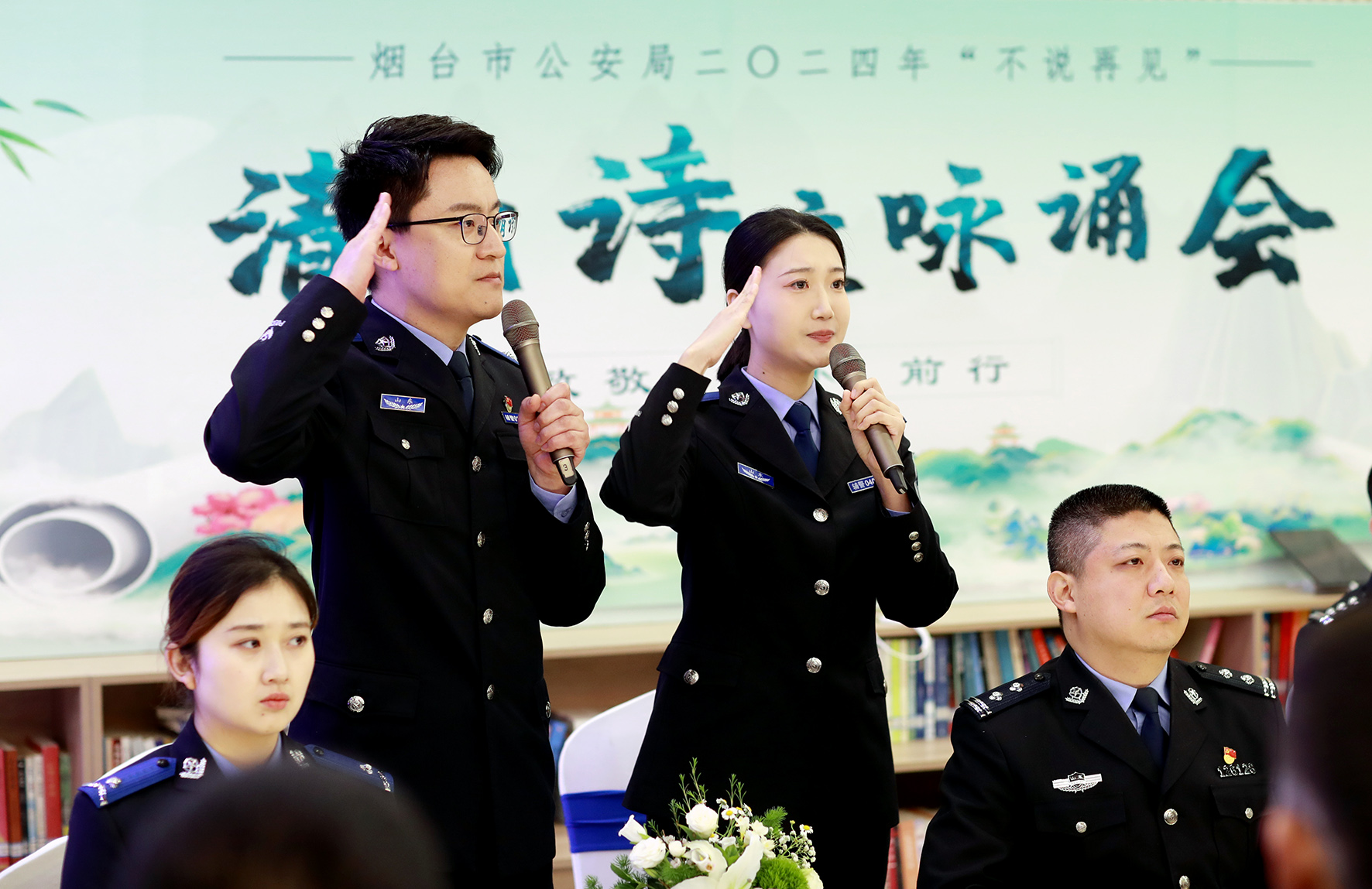 為緬懷英烈功績(jī),凝聚奮進(jìn)力量,4月3日,山東省煙臺(tái)市公安局舉辦清明詩(shī)歌詠誦會(huì),15名民警輔警現(xiàn)場(chǎng)深情詠誦了9首原創(chuàng)作品,追憶煙臺(tái)公安英烈的英勇事跡和感人的故事。