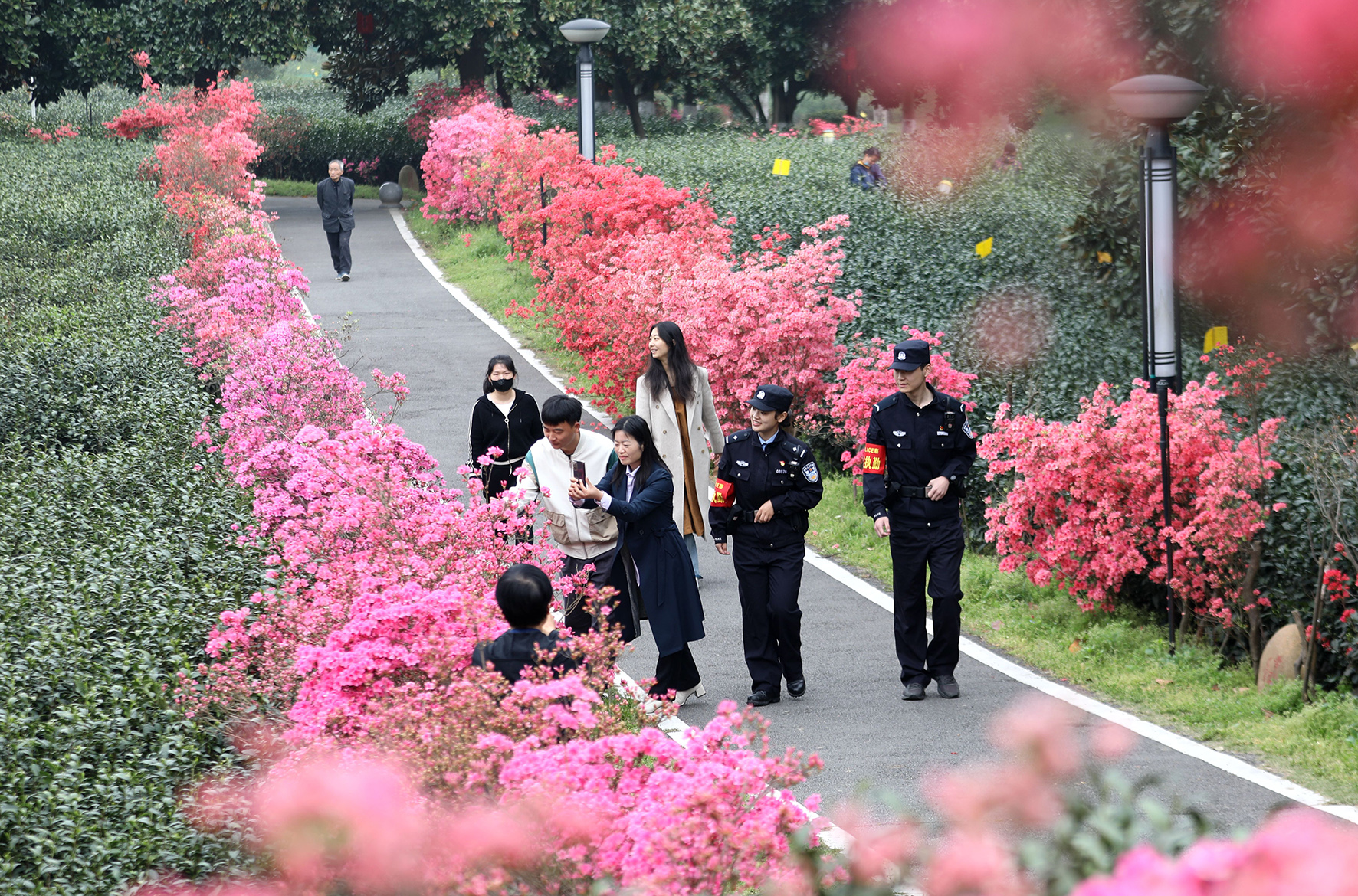 人間最美四月天,踏春賞花正當(dāng)時(shí)。4月7日,安徽省舒城縣公安局舒茶派出所組織警力在轄區(qū)九一六茶園巡邏守護(hù),為游客提供解答咨詢(xún)、求助報(bào)警、安全提示、游園引導(dǎo)等服務(wù)。