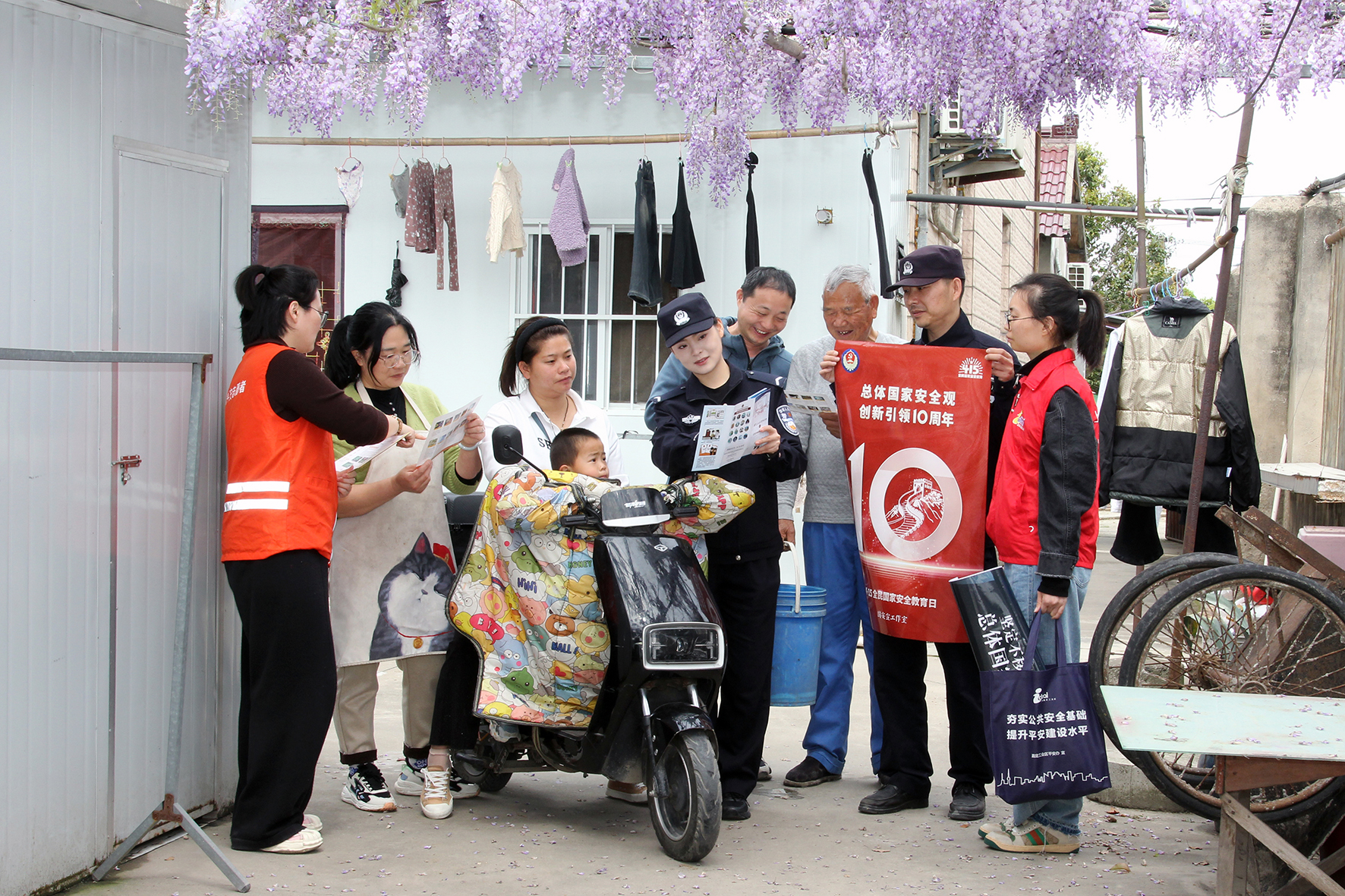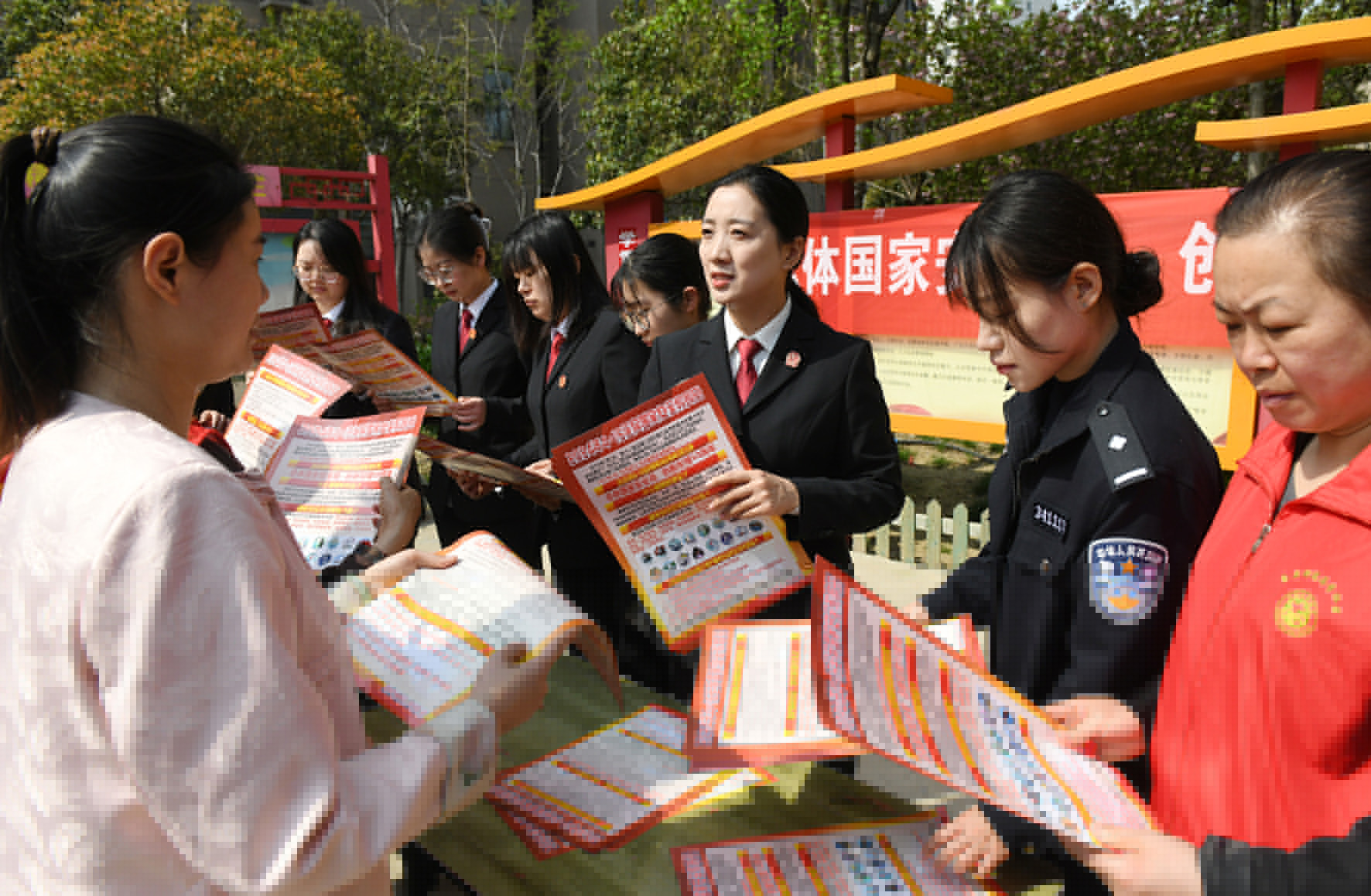 4月11日,山東省棗莊市公安局薛城分局鳳鳴湖派出所民輔警在轄區(qū)高樓社區(qū)全民國(guó)家安全教育日宣傳活動(dòng)。