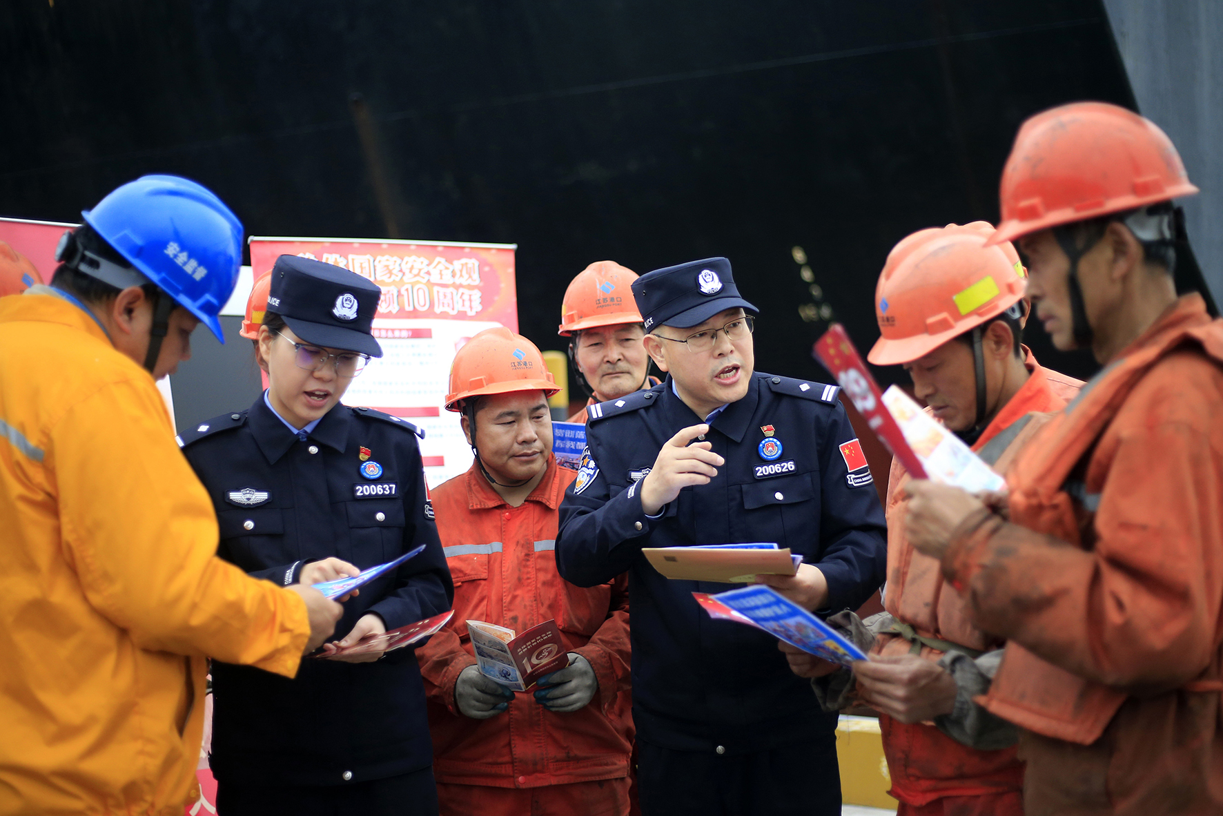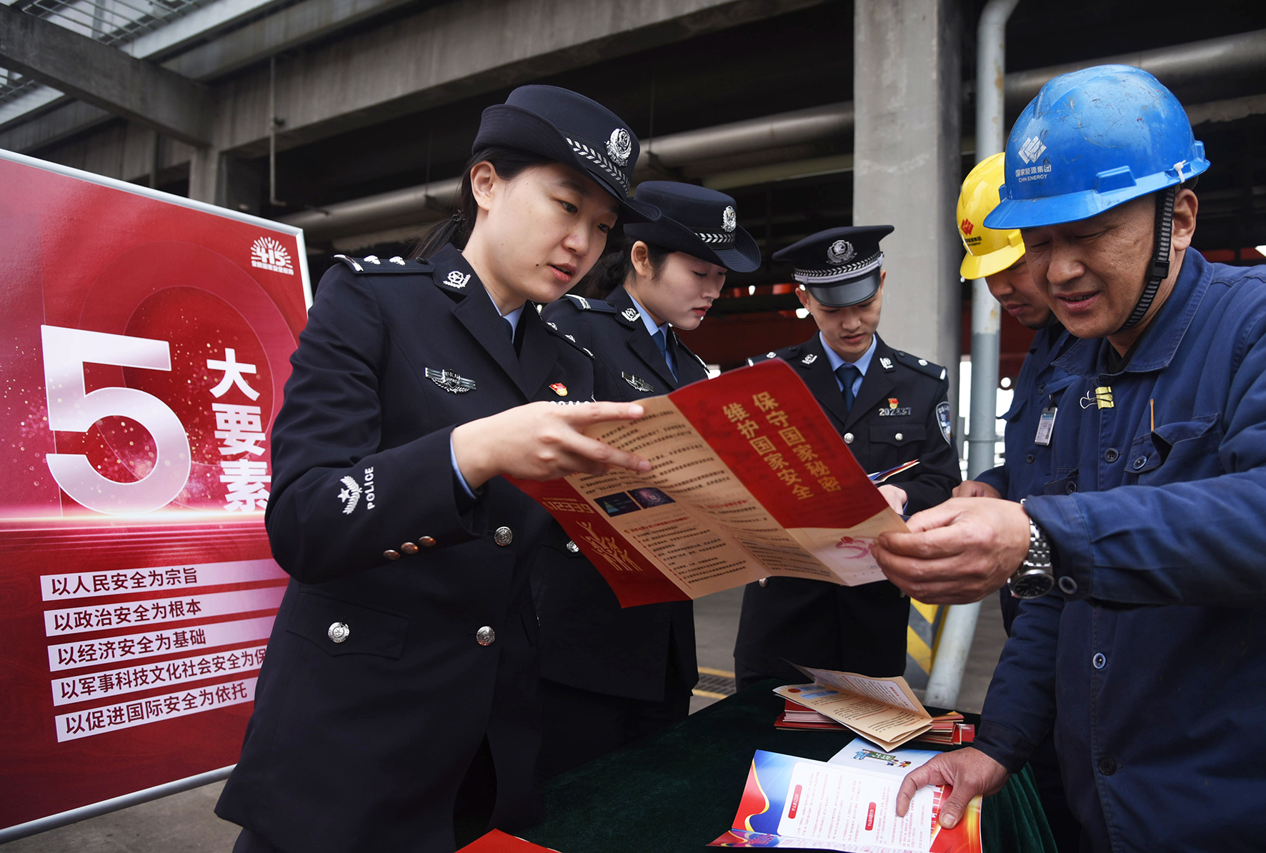 4月12日,在第九個全民國家安全教育日前夕,江蘇南京港出入境邊防檢查站組織民警深入口岸一線開展“總體國家安全觀 創(chuàng)新引領(lǐng)10周年”為主題的宣傳活動。