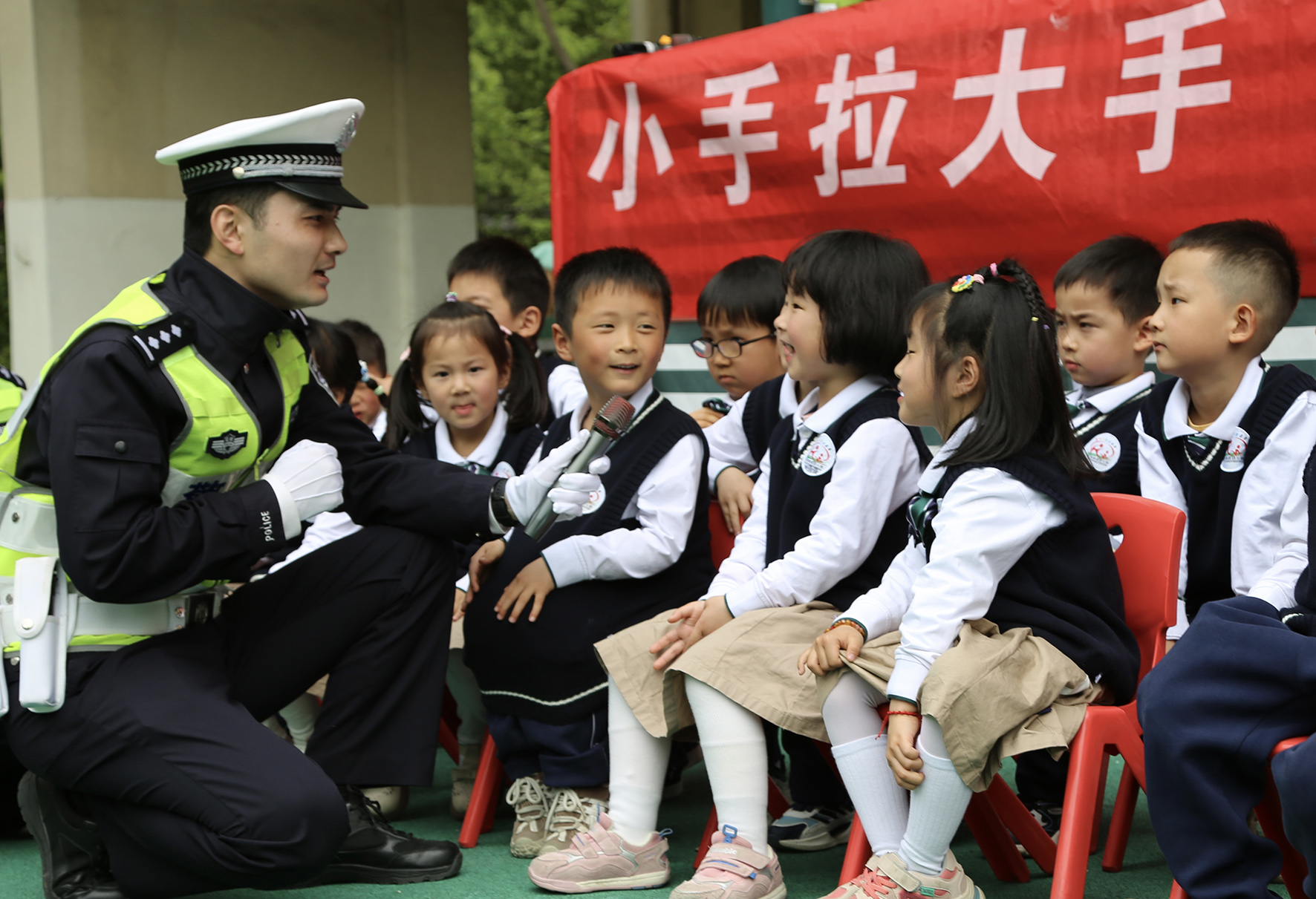 4月11日,在第九個全民國家安全教育日前夕,安徽省蕪湖市公安局交警支隊(duì)鏡湖大隊(duì)民警走進(jìn)環(huán)城南路幼兒園,開展“國家安全宣傳教育”進(jìn)校園活動。