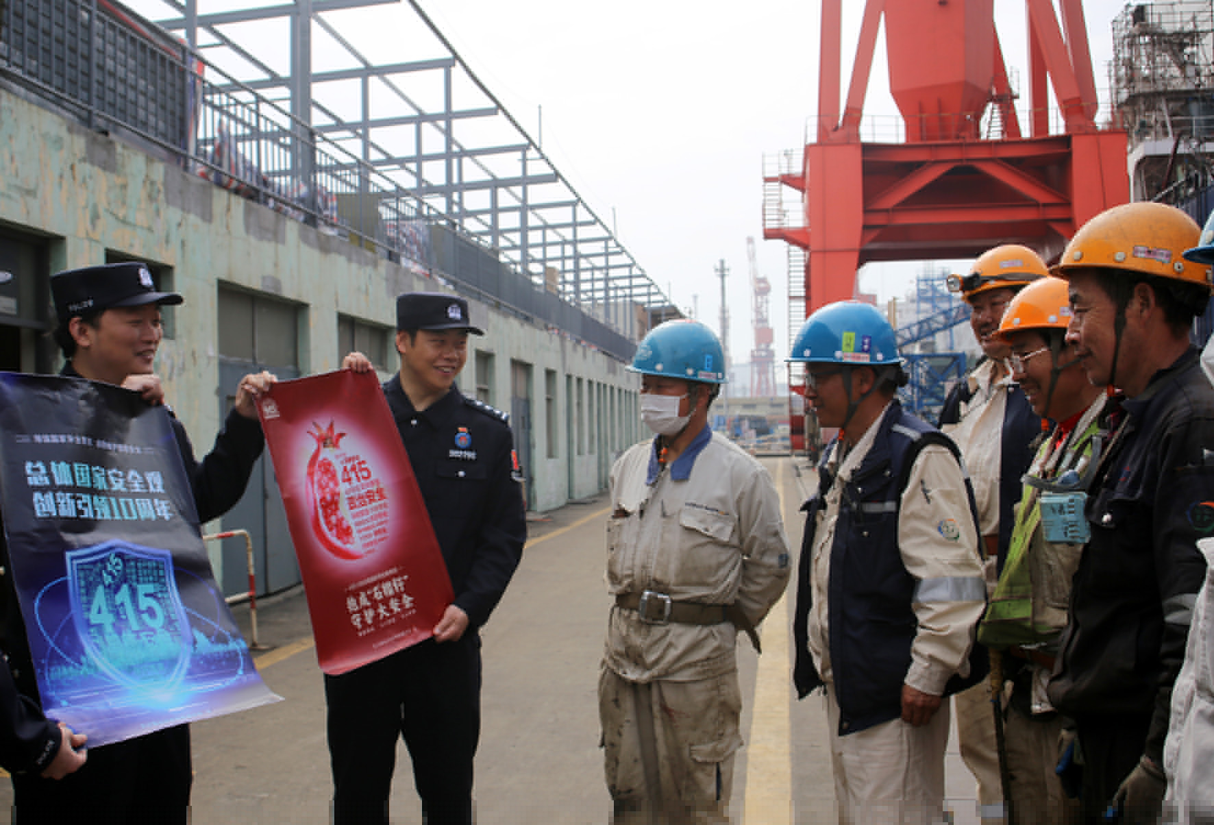 4月11日,長江航運(yùn)公安局南通分局南通派出所聯(lián)合南通邊檢執(zhí)勤二隊(duì)走進(jìn)轄區(qū)企業(yè),宣講國家安全法等法律法規(guī)。
