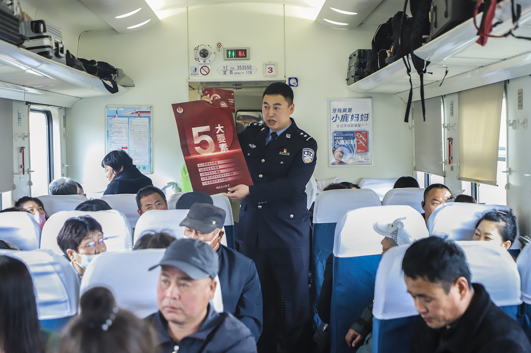 4月11日,沈陽鐵路公安局沈陽公安處組織民警在列車上開展全民國家安全教育日普法宣傳活動。