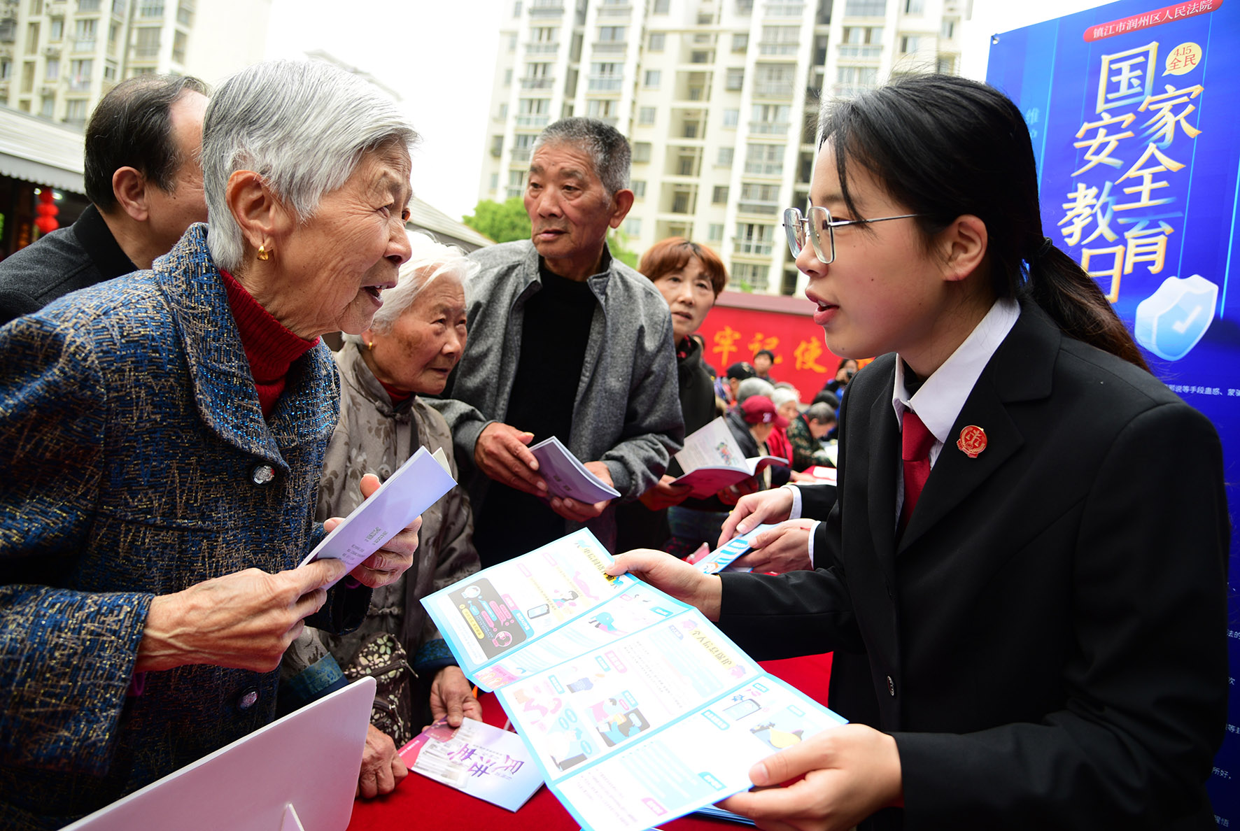 4月12日,江蘇省鎮(zhèn)江市潤州區(qū)委政法委、法院、檢察院、公安、司法、網(wǎng)信辦等部門聯(lián)合開展“全民國家安全教育日”主題宣傳進(jìn)社區(qū)活動。
