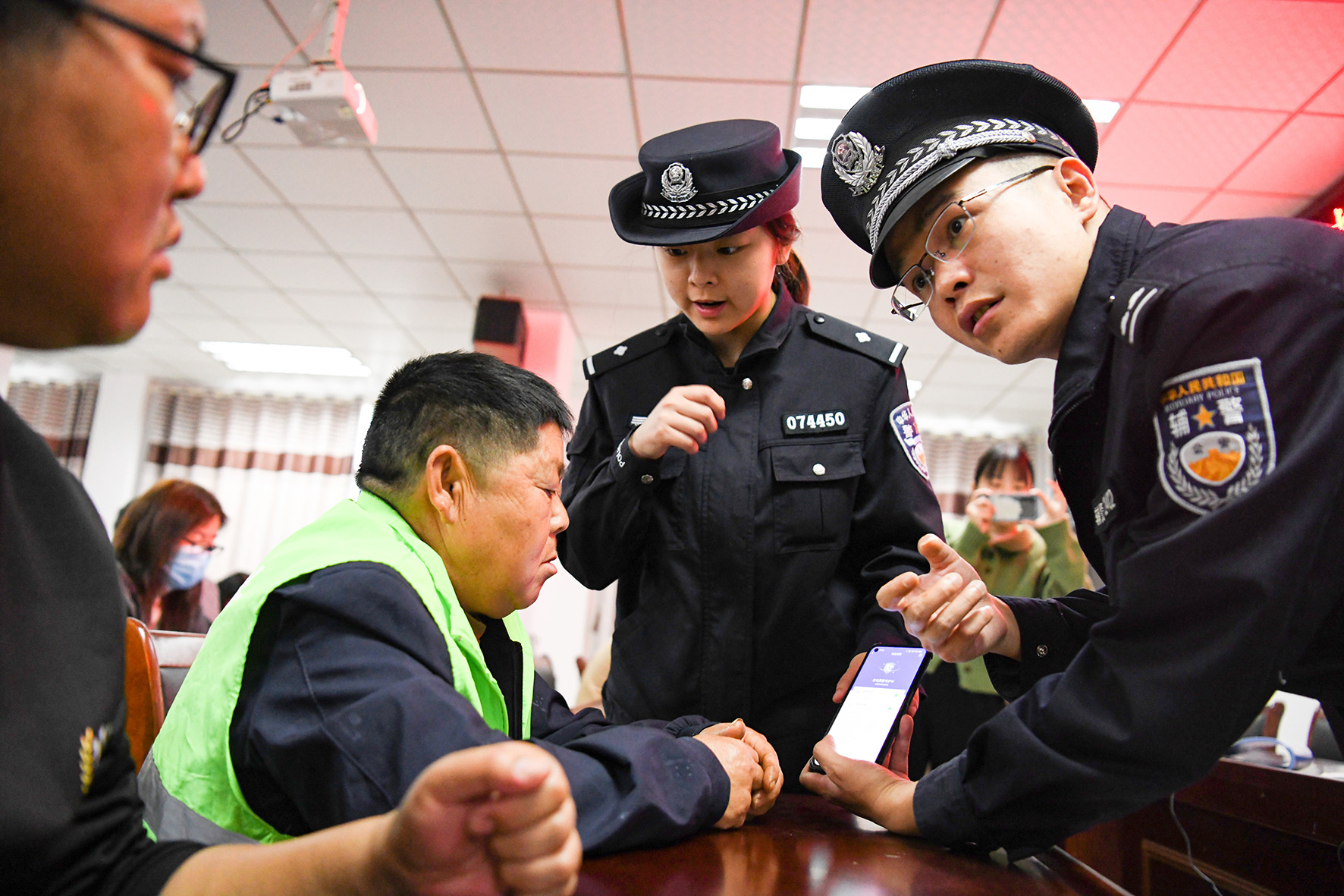 圖為民警為群眾演示下載國(guó)家反詐App的方法。