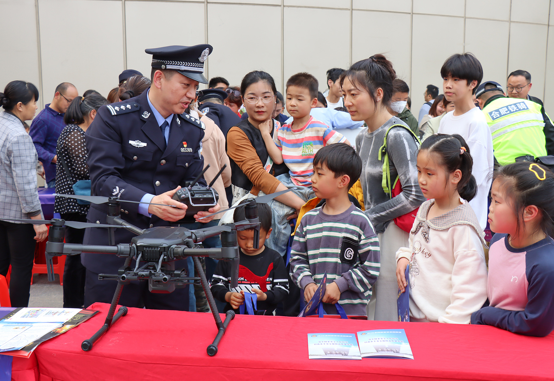 4月20日,安徽省合肥市公安局瑤海分局在轄區(qū)開展“平安瑤海,你我共建”大型戶外警民互動活動。活動中,民警輔警通過發(fā)放宣傳單頁、裝備展示、互動問答等形式向市民群眾宣傳交通安全、反詐、禁毒等知識。