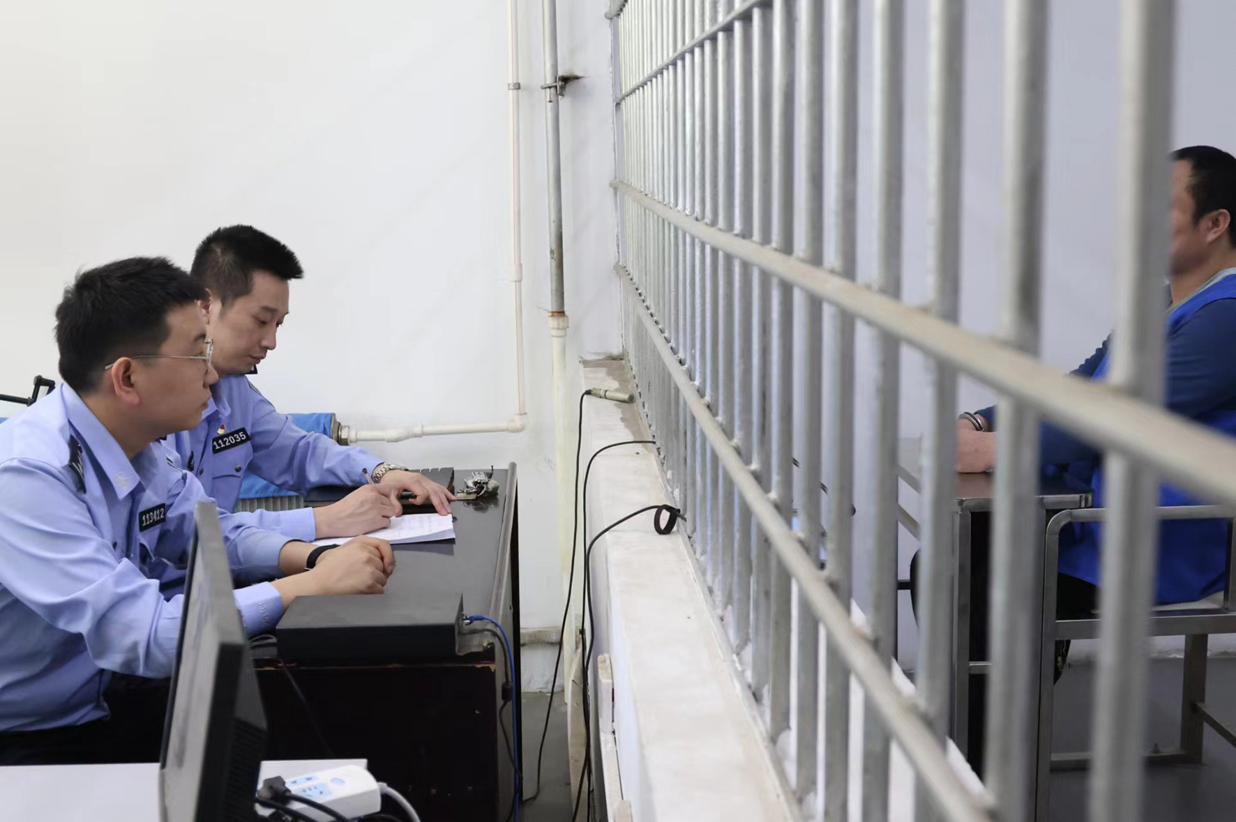 圖為5月7日,辦案民警提審犯罪嫌疑人。