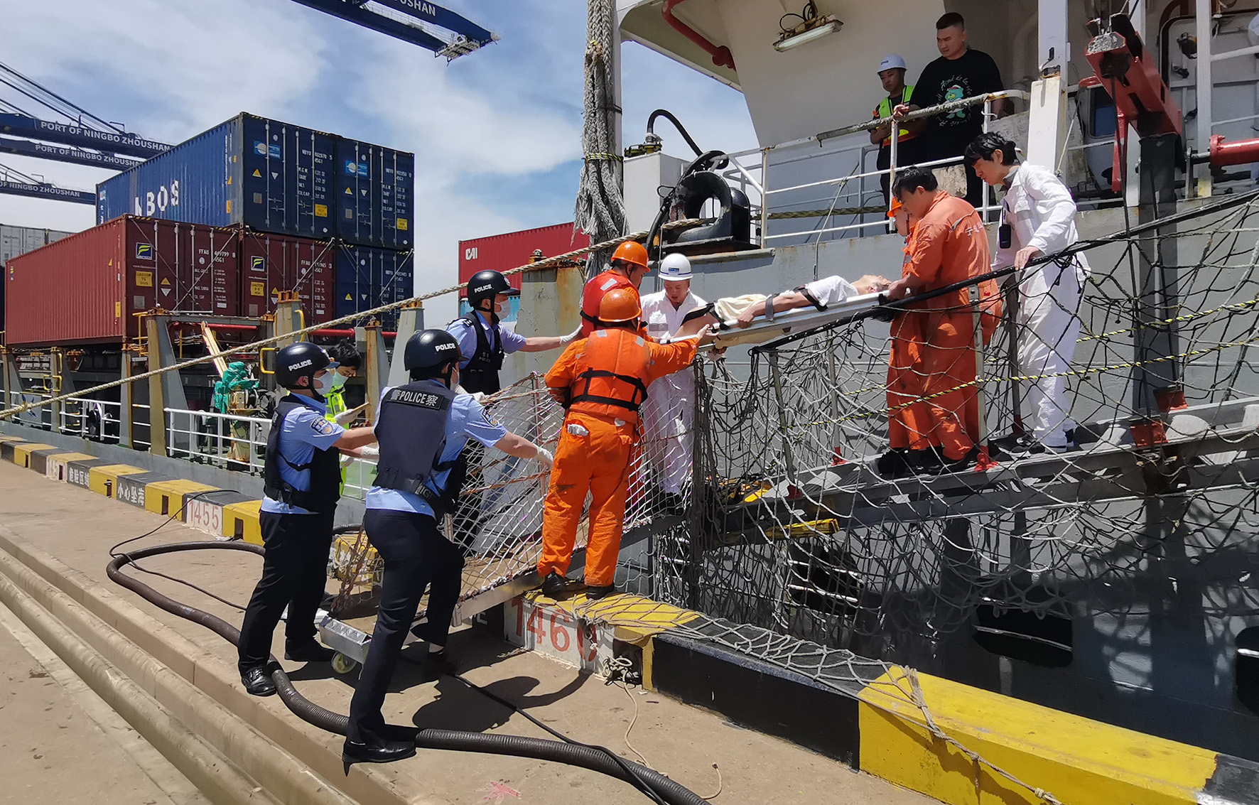 5月9日,浙江寧波出入境邊防檢查站綜合執(zhí)勤七隊開通“綠色通道”緊急救助一名中國籍受傷船員。