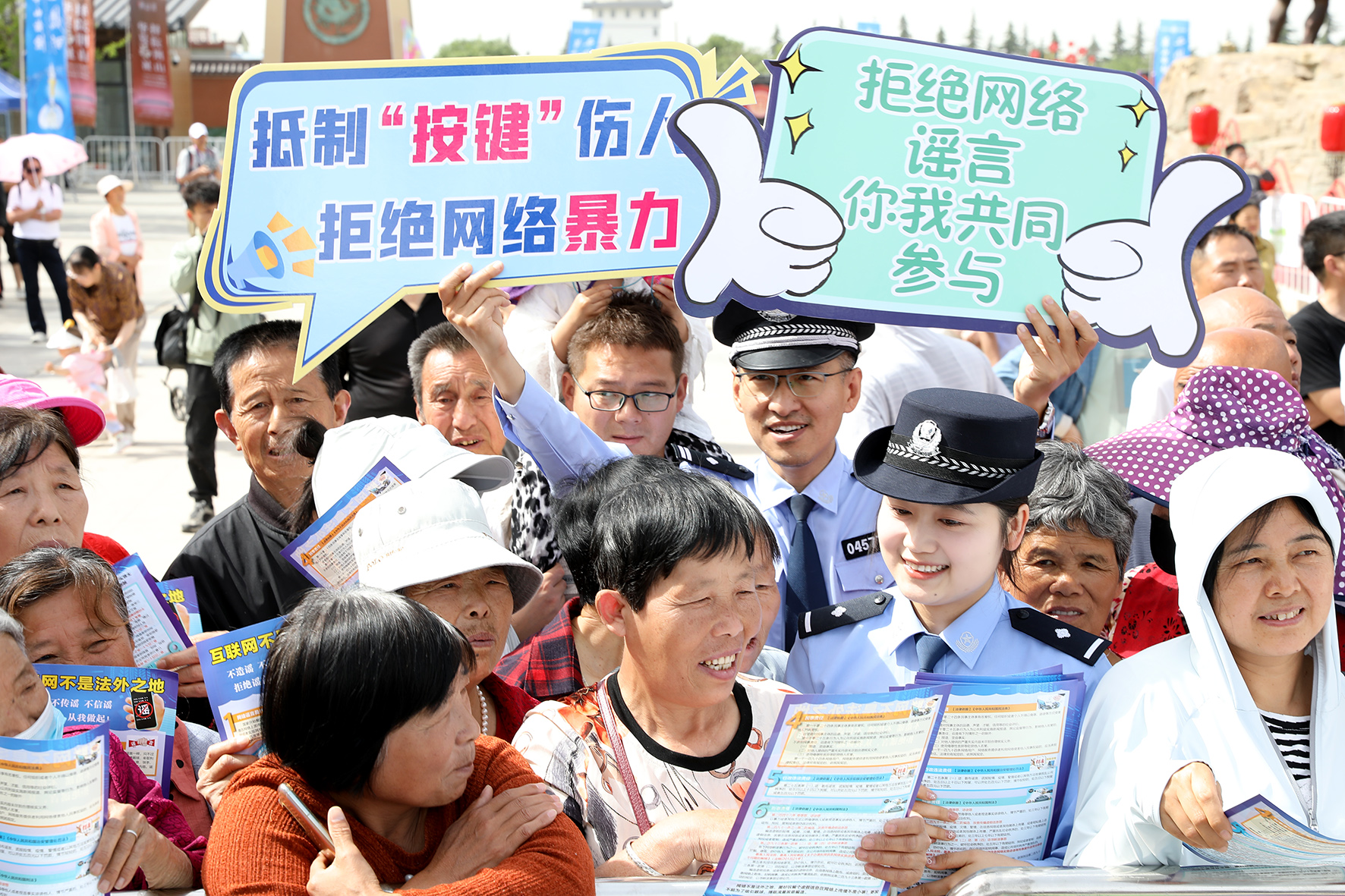 5月11日,陜西省富平縣公安局網(wǎng)安大隊(duì)組織民警輔警在旅游景區(qū)開展“拒絕網(wǎng)絡(luò)謠言,你我共同參與”宣傳活動(dòng)。