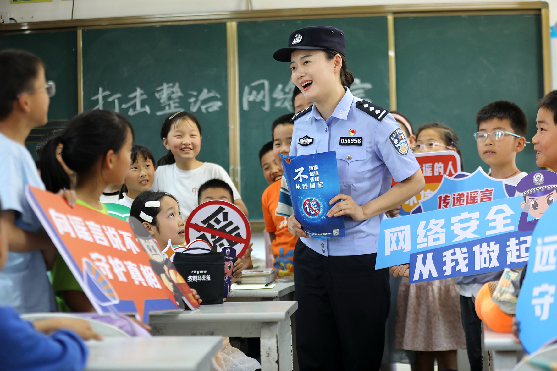 5月17日,安徽省舒城縣公安局網(wǎng)監(jiān)大隊(duì)聯(lián)合柏林派出所來(lái)到柏林鄉(xiāng)中心小學(xué)開(kāi)展整治網(wǎng)絡(luò)謠言宣傳活動(dòng)。
