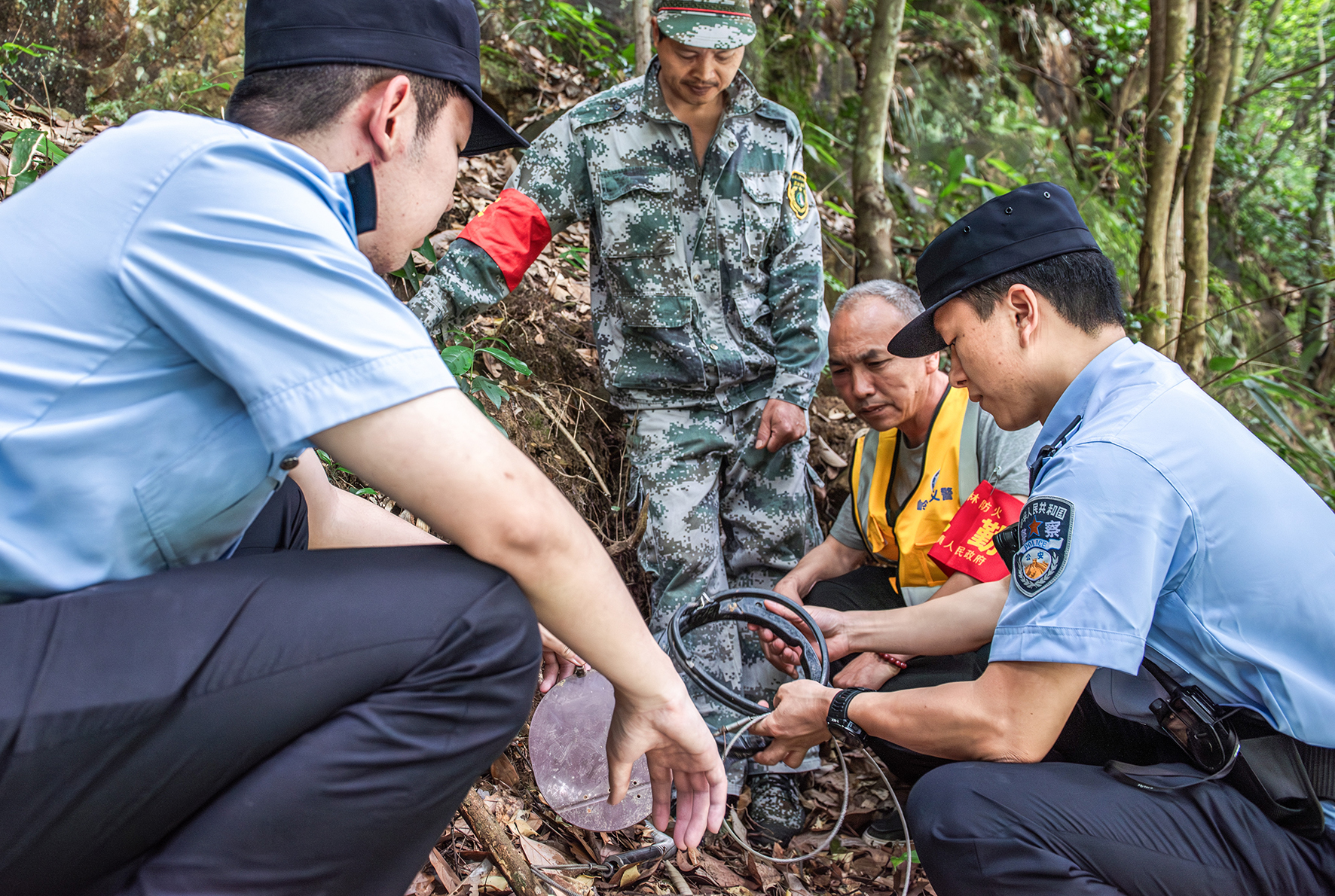 圖為5月22日,民警在巡查中發(fā)現(xiàn)非法安裝的捕獵夾,進行拆除收繳。