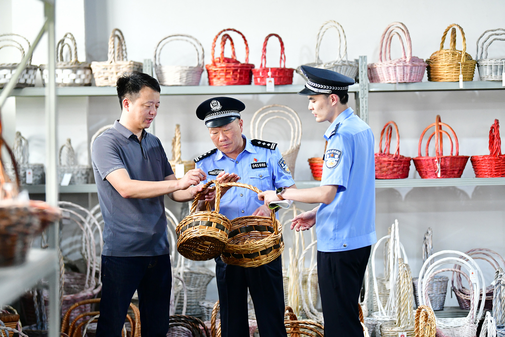 5月27日,安徽省阜南縣公安局經(jīng)偵民警在縣經(jīng)濟(jì)開(kāi)發(fā)區(qū)一家柳編企業(yè)走訪經(jīng)濟(jì)發(fā)展情況,開(kāi)展防范非法集資、養(yǎng)老詐騙、高利轉(zhuǎn)貸、合同詐騙等宣傳。