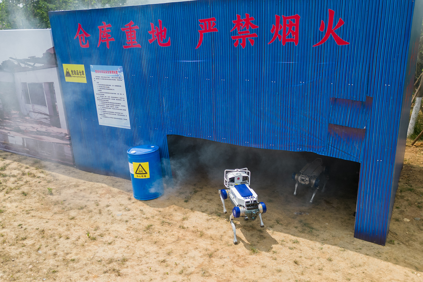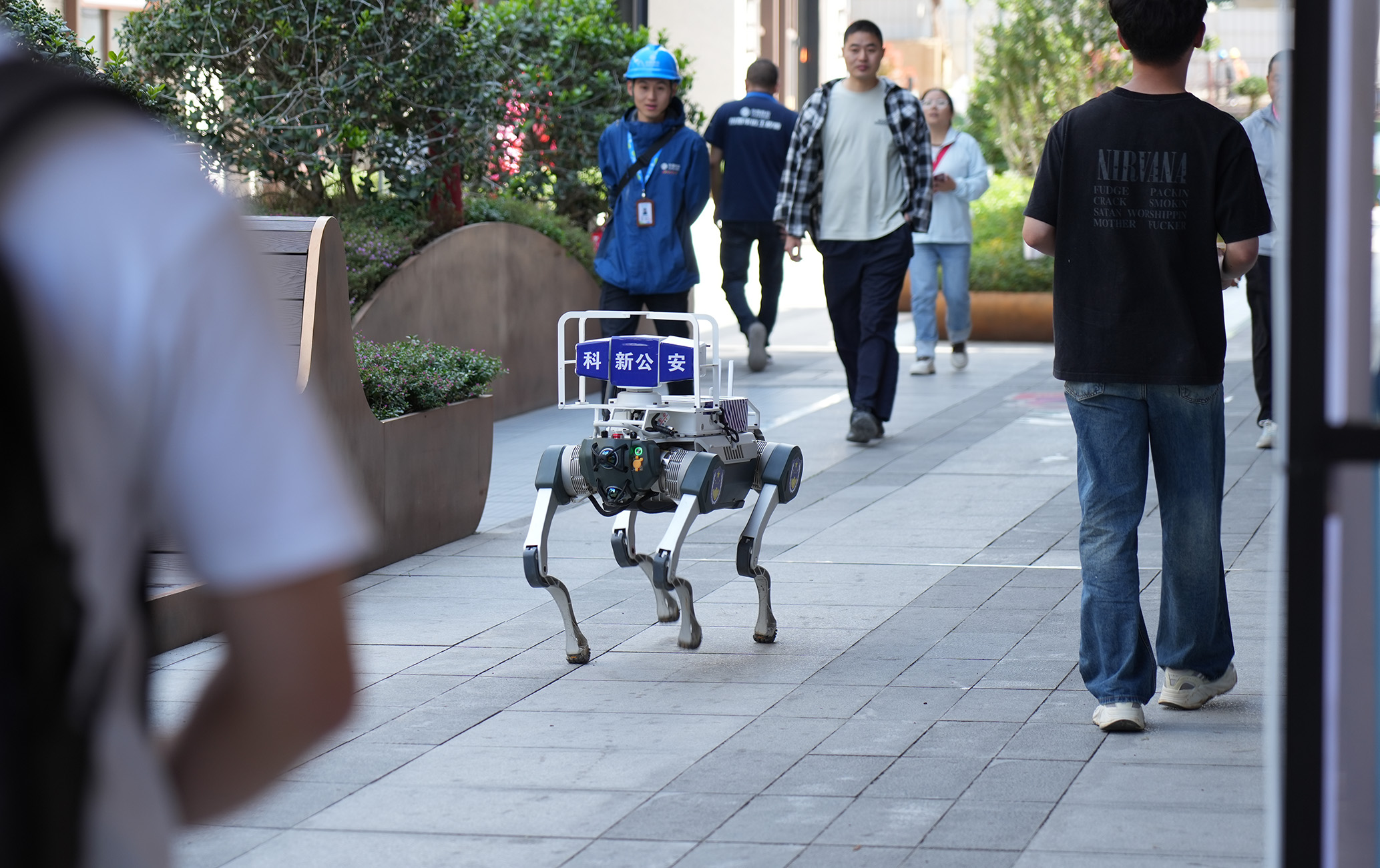 圖二:綿陽市公安局刑偵支隊(duì)民警在綿陽科技城新區(qū)機(jī)器人研學(xué)基地開展現(xiàn)堪機(jī)器狗的測試和應(yīng)用。