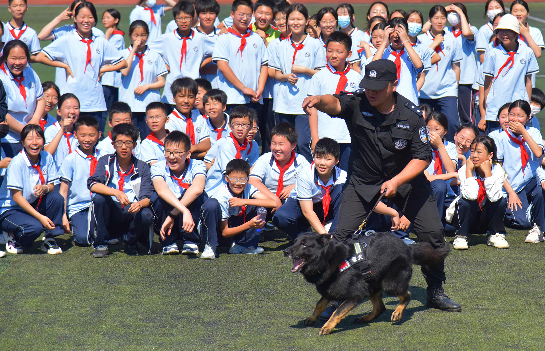 5月28日,安徽省馬鞍山市公安局組織民警走進(jìn)雨山實(shí)驗(yàn)學(xué)校開展“平安進(jìn)校園·守護(hù)‘警’相隨”活動(dòng)。活動(dòng)現(xiàn)場,經(jīng)偵、治安、特警、刑警、網(wǎng)安、交警等七大警種依次登場,為師生帶來了一場生動(dòng)的安全防范教育課。