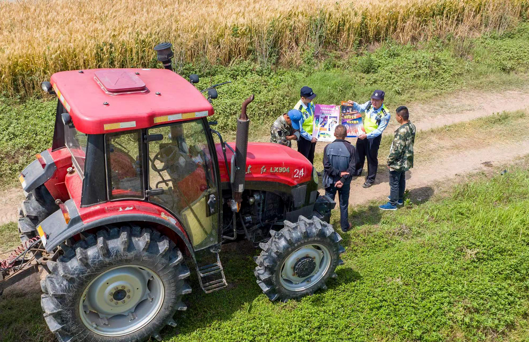 6月3日,上海市公安局崇明分局長江派出所組織民警來到田間地頭,向田間勞作的大型機(jī)械駕駛員們開展交通安全宣傳活動(dòng)。