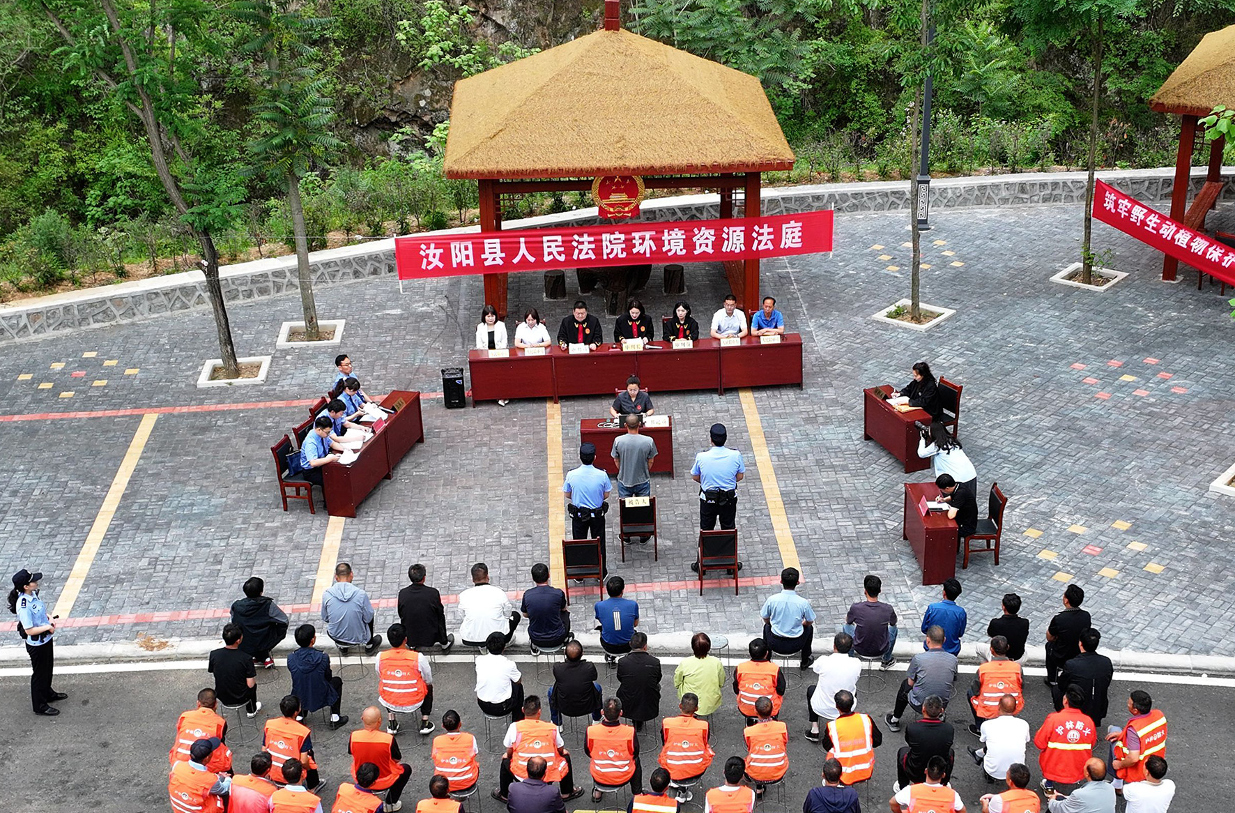 6月4日,河南省汝陽縣人民檢察院訴王某某危害國家重點保護植物刑事附帶民事公益訴訟一案在深山區(qū)付店鎮(zhèn)松門村開庭,50余名村干部、護林員、村民參與了旁聽。庭審結束后,檢察院干警現(xiàn)場向群眾發(fā)放野生植物保護宣傳單,解答群眾法律咨詢,強化群眾環(huán)境生態(tài)保護意識。